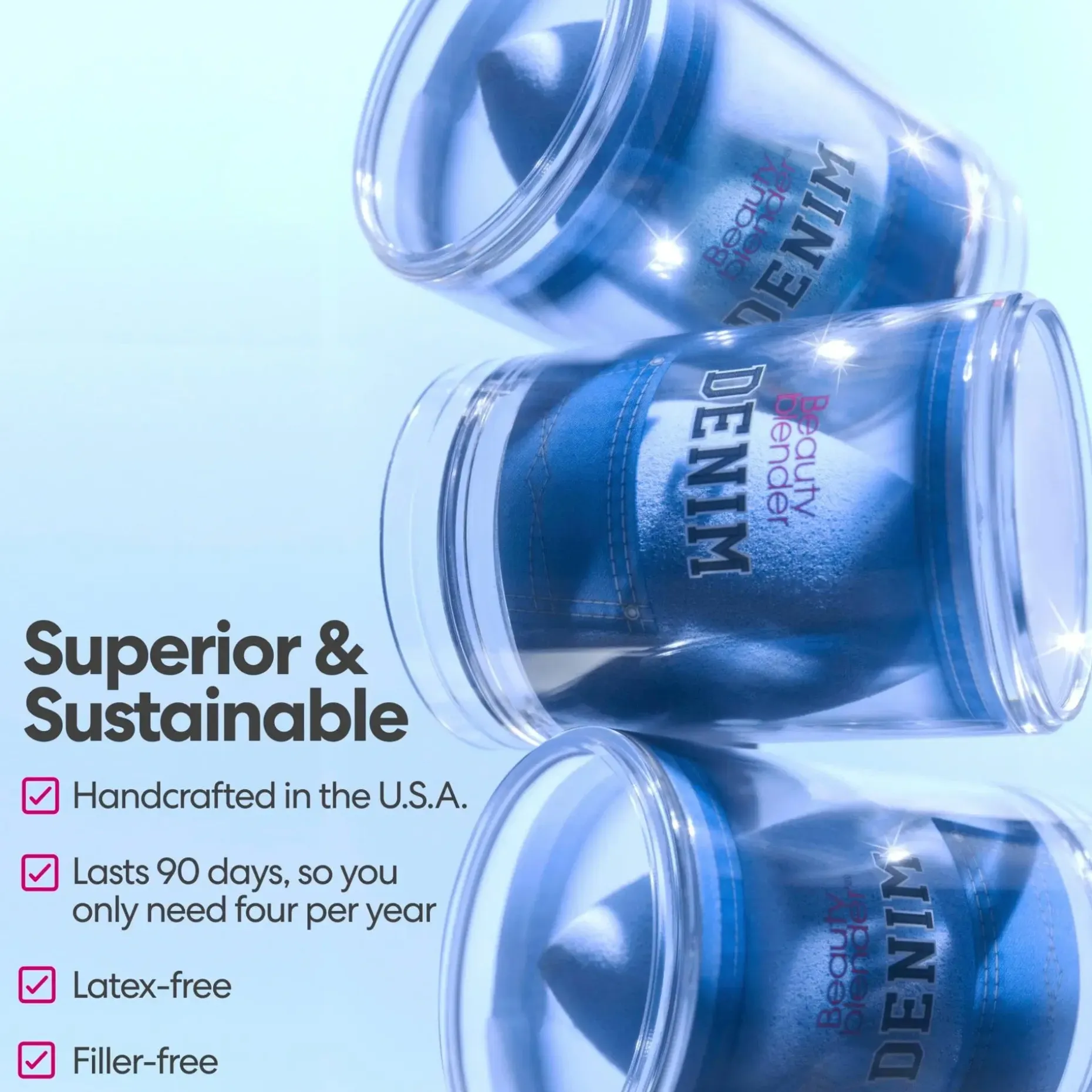 Saammeko esitellä Beautyblender® Denim – täydellinen yhdistelmä muotia & käytännöllisyyttä takaa virheettömän, ihoon sulautuvan lopputuloksen. Tämä sinisävyinen meikkisieni on valmistettu samasta eksklusiivisesta materiaalista kuin alkuperäinen Beautyblender®. Aivan kuin pukeutuisit lempifarkkuihisi, se on luotettava, vaivattoman tyylikäs ja aina paikalla, kun tarviset sitä.