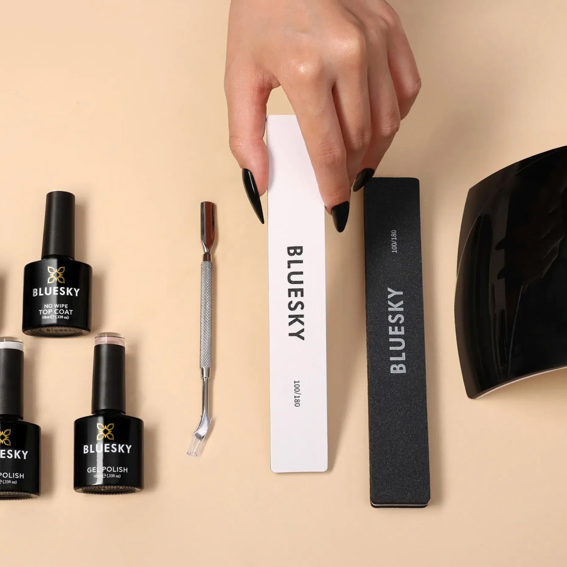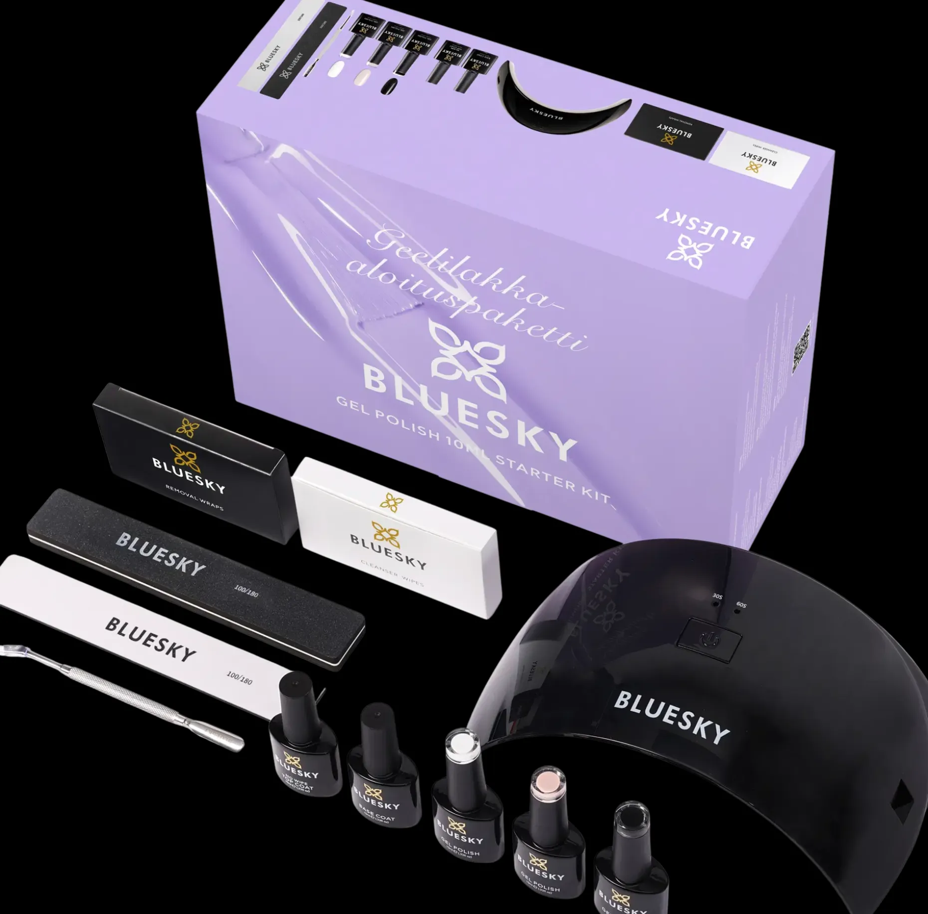 Blueskyn uudistunut entistäkin kattavampi Geelilakka-aloituspaketti sisältää kaiken mitä tarvitset geelilakkauksen tekoon ja poistoon.
