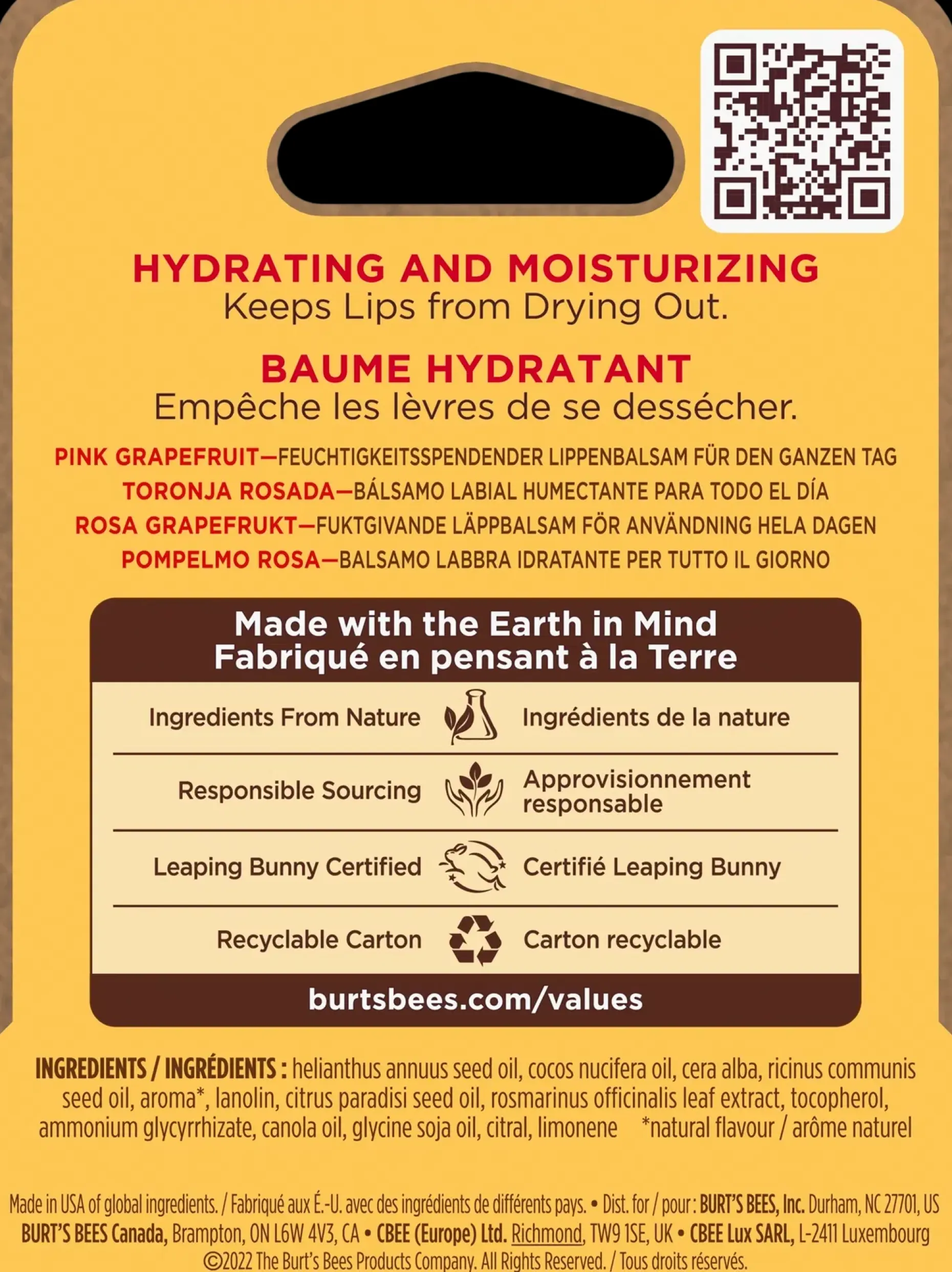 Burt’s Bees Pink Grapefruit Lip Balm on 100% luonnollinen ja antaa sinulle vitalisoivan kokemuksen. Sisältäen trooppista, C- ja E-vitamiini rikasta, kreippiöljyä, antaa se huulillesi virkistävän tunteen ja kosteutuksen sekä ihanan makean sitrustuoksun. Täydellinen mukaan otettavaksi laukkuun tai taskuun, jotta voit helposti kosteuttaa huuliasi missä vain, milloin vain.
