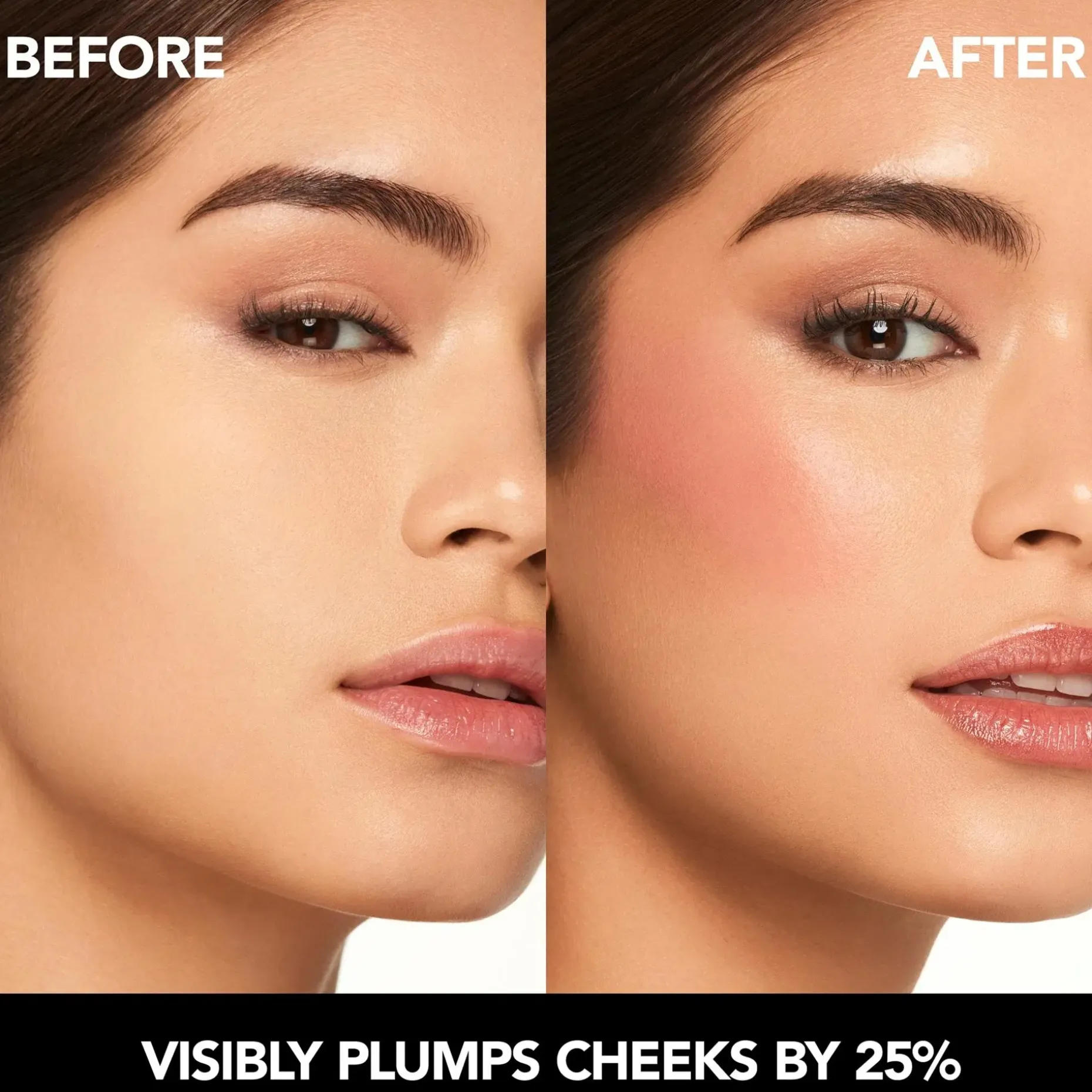 Kliinisesti todistettu plumping-voide-puuteripuna, joka pehmentää ja korostaa poskia luonnollisella, blurratulla, filtterimäisellä lopputuloksella. Kliinisesti todistettua täyteläisyyttä ilman kipua. Tässä edistyksellisessä poskipunassa yhdistyvät voiteen helppous, puuterimainen lopputulos ja kehittynyt plumping-teknologiamme, joka kliinisesti todistetusti täyteläistää ja korostaa poskia näkyvästi. Täydellinen sekoitus mattaa ja sädehtivää hehkua, ilmava koostumus sulautuu kuin unelma ja jättää poskipäihin utuisen, kerrostettavan värin ja luonnollisen lopputuloksen. Cruelty free.