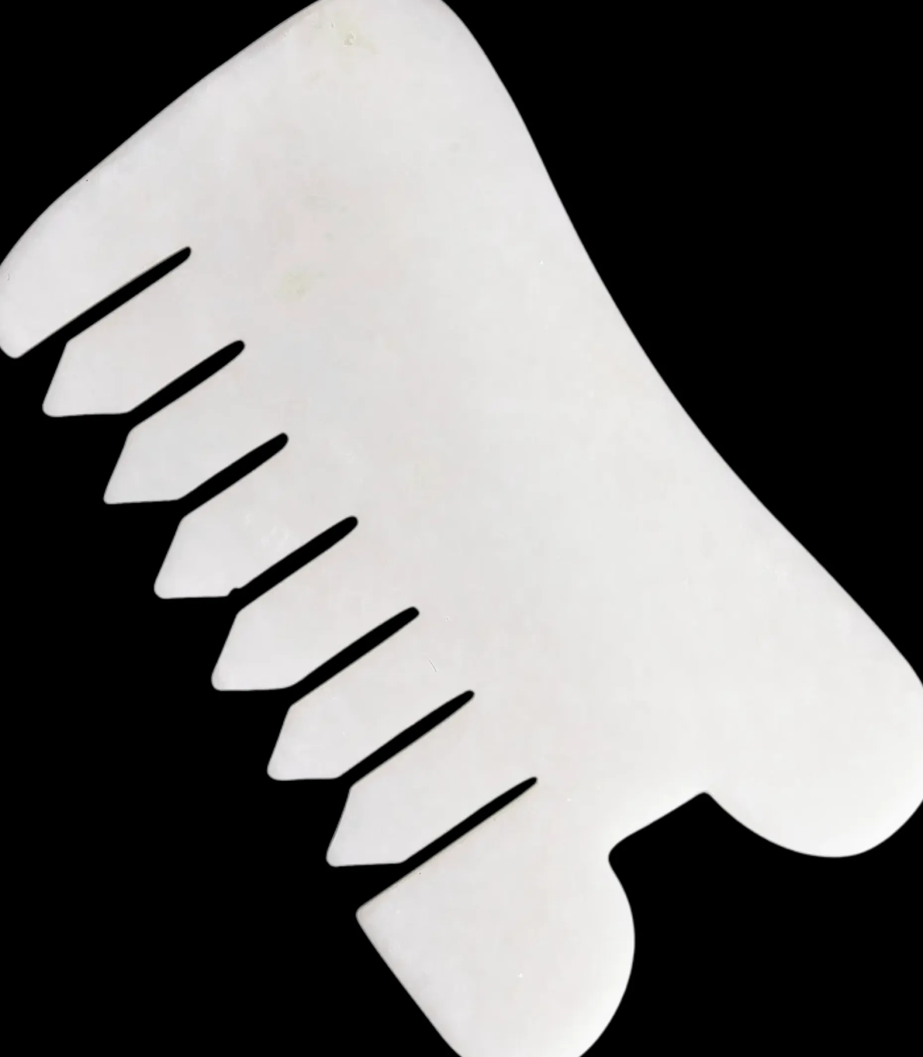Jadekivestä valmistettu Gua sha -kampa koko kehon monipuoliseen hoitoon/hierontaan. Kiinteyttää, lisää ihon elastisuutta, vähentää turvotusta, häivyttää juonteita, parantaa verenkiertoa ja auttaa poistamaan kuona-aineita kehosta. Sopii kasvojen, niskan ja hiuspohjan käsittelyyn, myös tehokas vartalon lihasjumien avaamisessa. Gua sha hieronnassa suositellaan käytettäväksi iholla kosteuttavaa öljyä/voidetta. Tarkemmat hierontaohjeet pakkauksen sisällä.