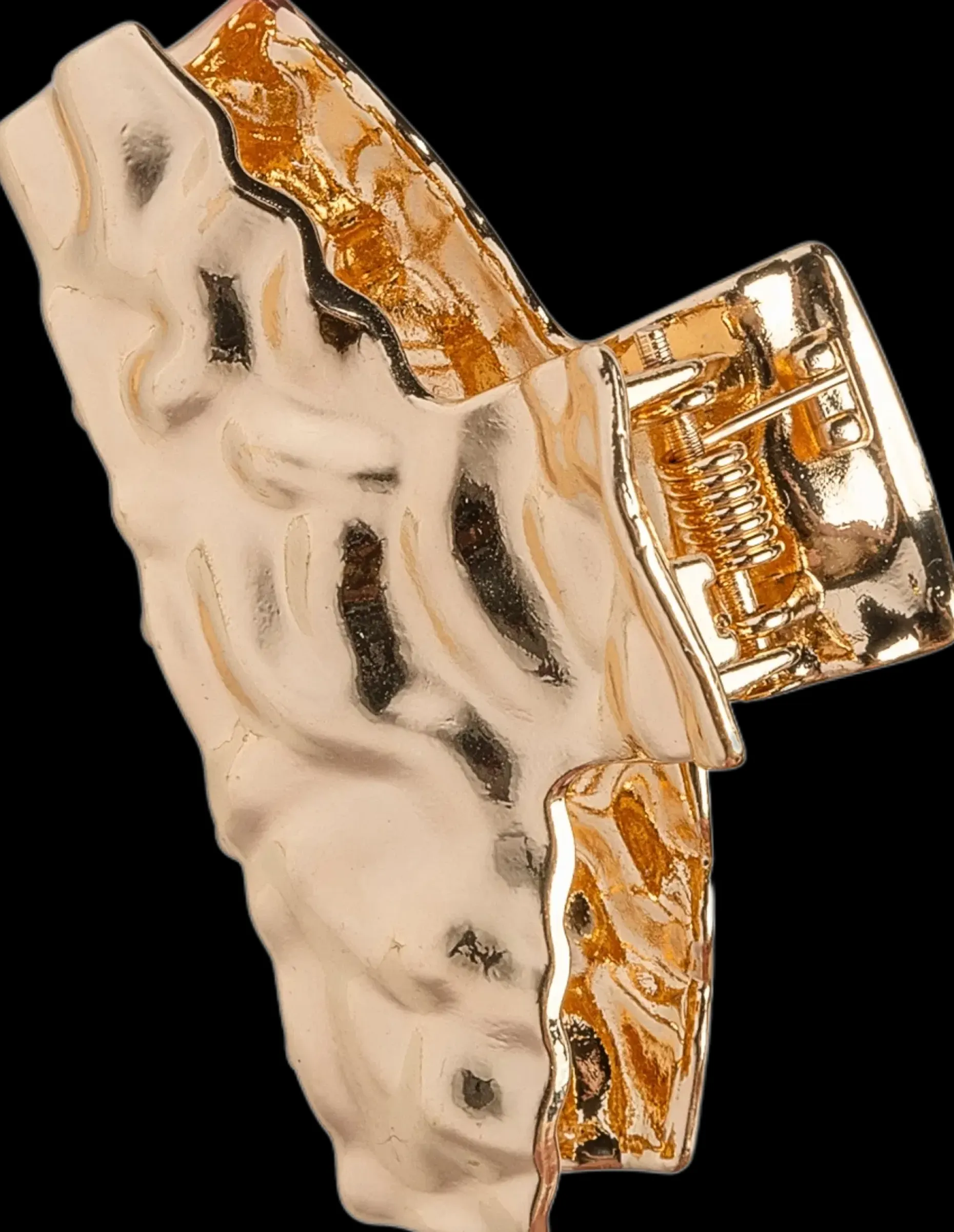 Pieni kultainen metallinen hiussolki. Leveys noin 5,5 cm.