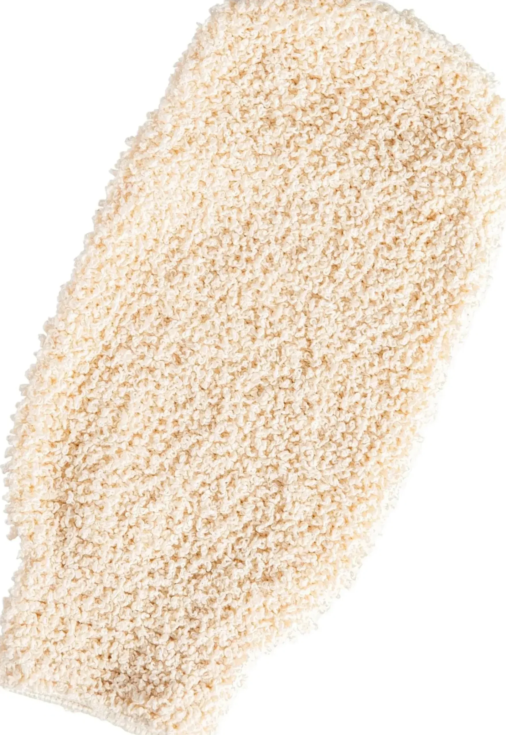 Kuoriva pesukinnas, joka kiihdyttää verenkiertoa ja kuorii ihoa sitä pehmentäen. Hiero ihoa pyörivin liikkein aloittaen kehon uloimmista osista liikkuen kohti kehon keskustaa. Väri luonnonvaalea. Materiaali bambua. Yhden koon, joustava, koko noin 12×22 cm.