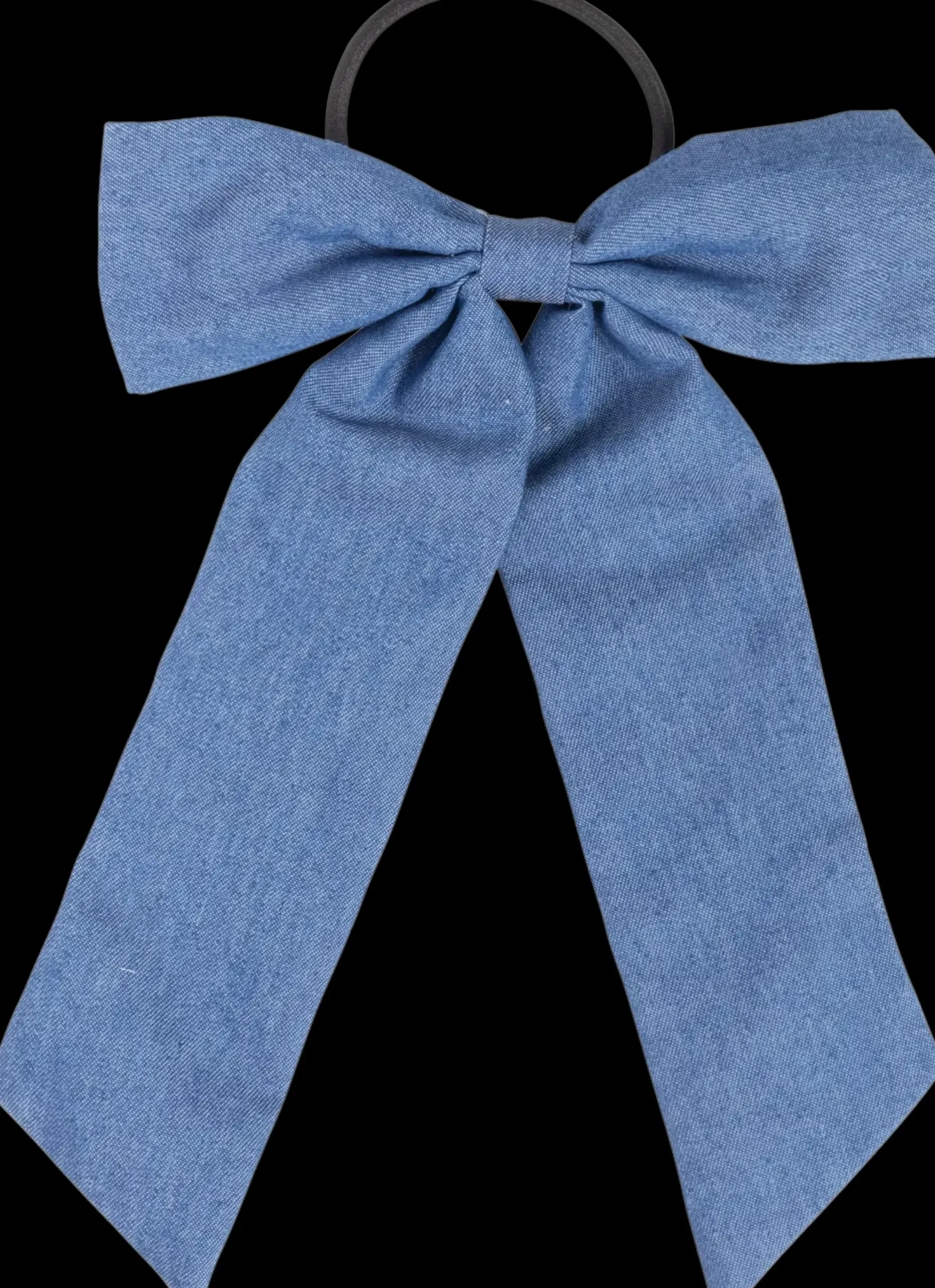 Trendikäs sinistä farkkukangasta oleva rusettihiuslenkki. Rusetin pituus noin 22 cm.