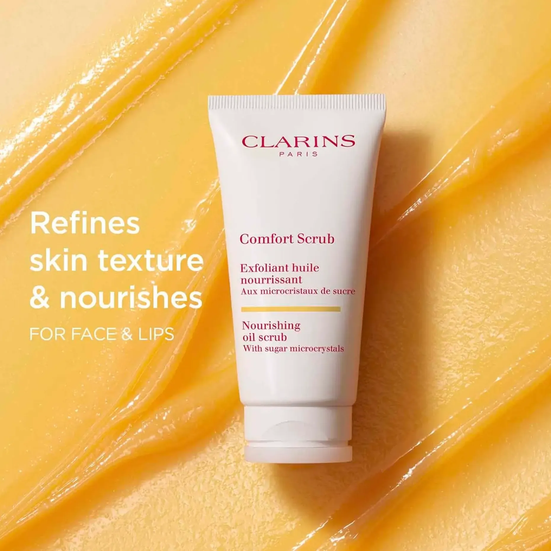 Sen sokerimikrokiteet poistavat hellävaraisesti kuolleet ihosolut kasvoilta ja huulilta.