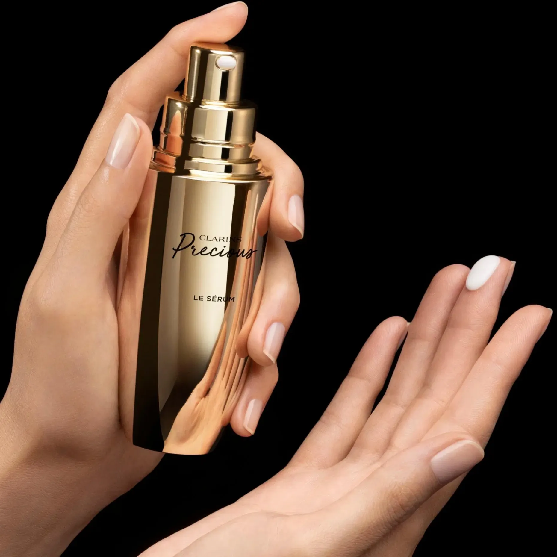 Clarins Precious -ihonhoitorituaalin ytimessä on poikkeuksellinen seerumi, joka kohdistuu ihon veltostumiseen: yksi ihon ikääntymisen aiheuttamista huolenaiheista. Vain muutama tippa ja voit tuntea, kuinka ihosi kohoaa. Ihosta tulee kiinteämpi ja kasvojen ääriviivat näyttävät terävämmiltä, päivä päivältä. Hellävarainen ja kevyt koostumus sulaa ihoon ja jättää sen tuntuvasti pehmeämmäksi.
