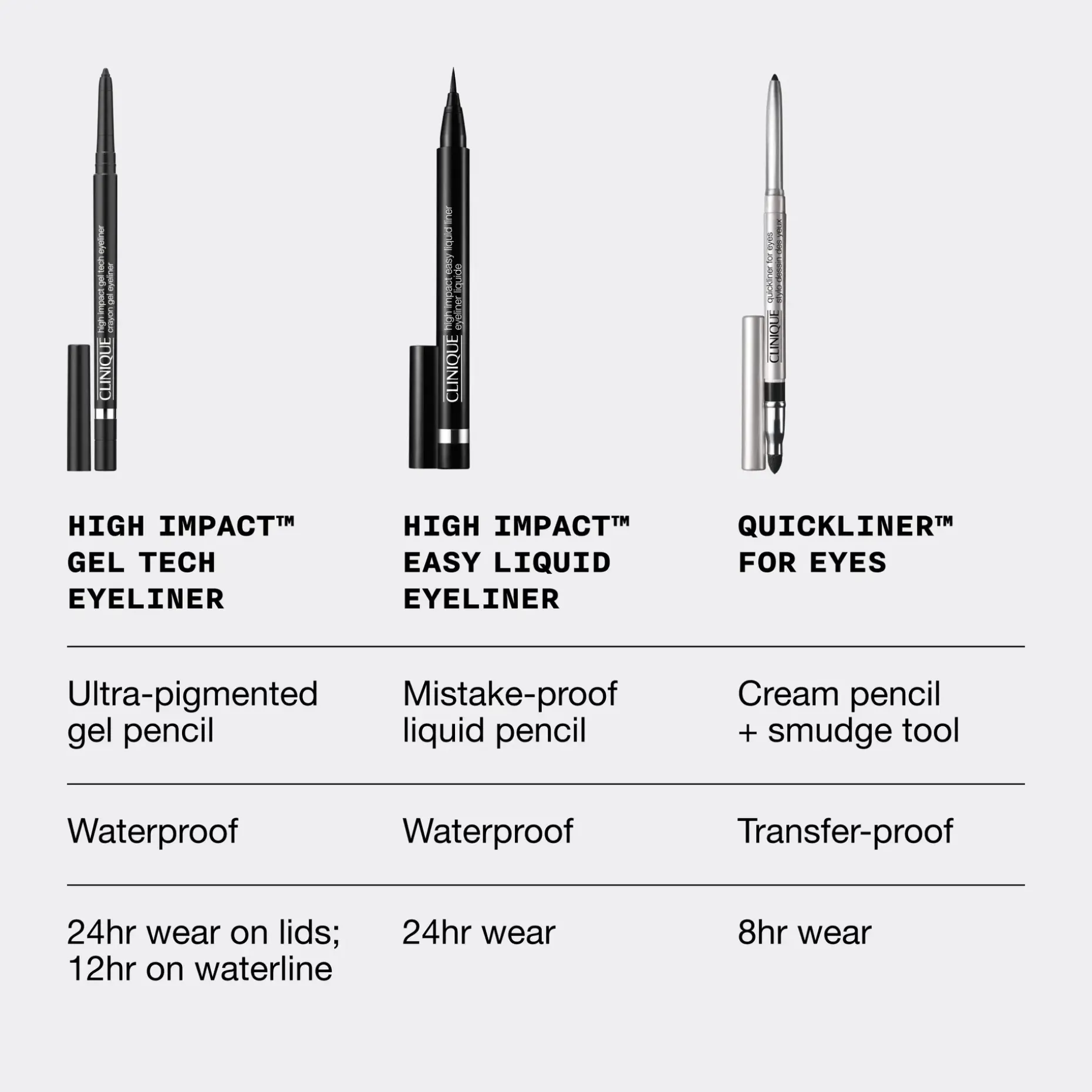 High Impact Gel Tech Eyeliner on runsaspigmenttinen, vedenkestävä geelirajauskynä, joka liukuu pehmeästi ja pysyy paikoillaan. Se toimittaa 24 tunnin kestävyyden luomilla ja 12 tunnin kestävyyden vesirajassa.