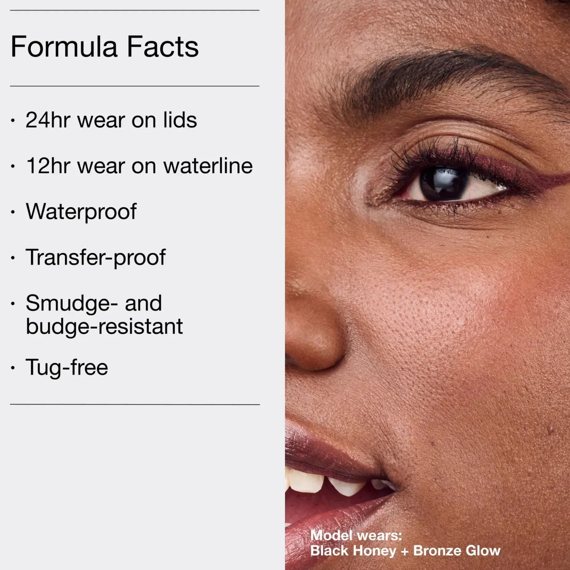 Saatavilla useassa sävyssä, jotka vaihtelevat jokapäiväisistä perusväreistä elinvoimaisiin metallisävyihin. Sisältää kolme neutraalia sävyä, jotka kirkastavat silmämeikkiäsi: Bright White, Beaming Beige ja Bronze Glow.