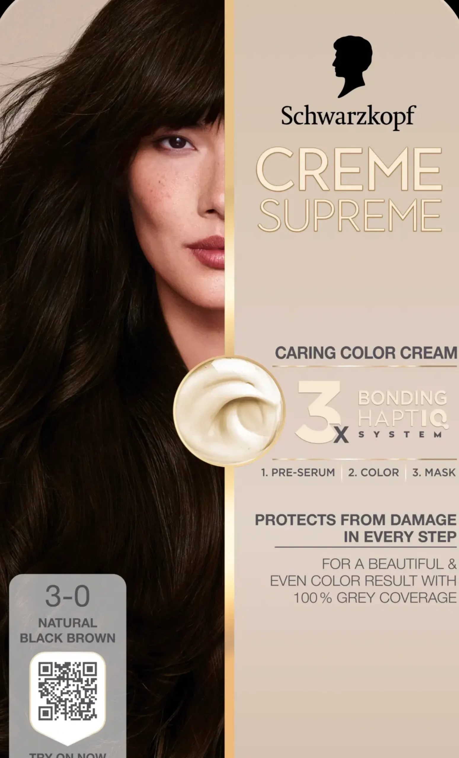 Schwarzkopf Creme Supreme 3-0 Natural Black Brown – The color you desire with the care you deserve.