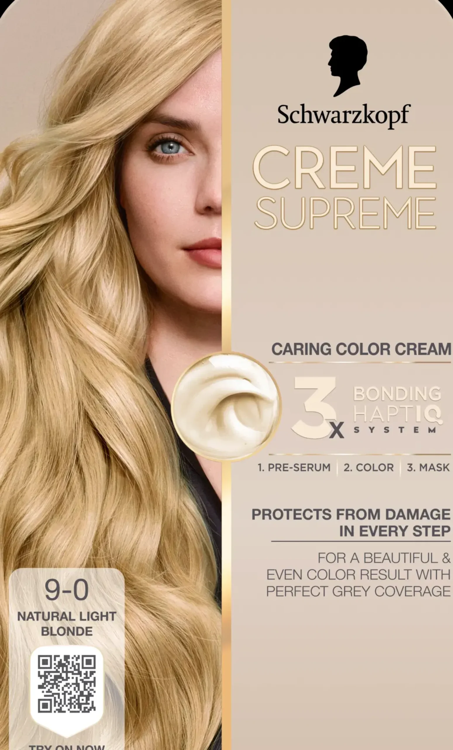 Schwarzkopf Creme Supreme 9-0 Natural Light Blonde – The color you desire with the care you deserve.