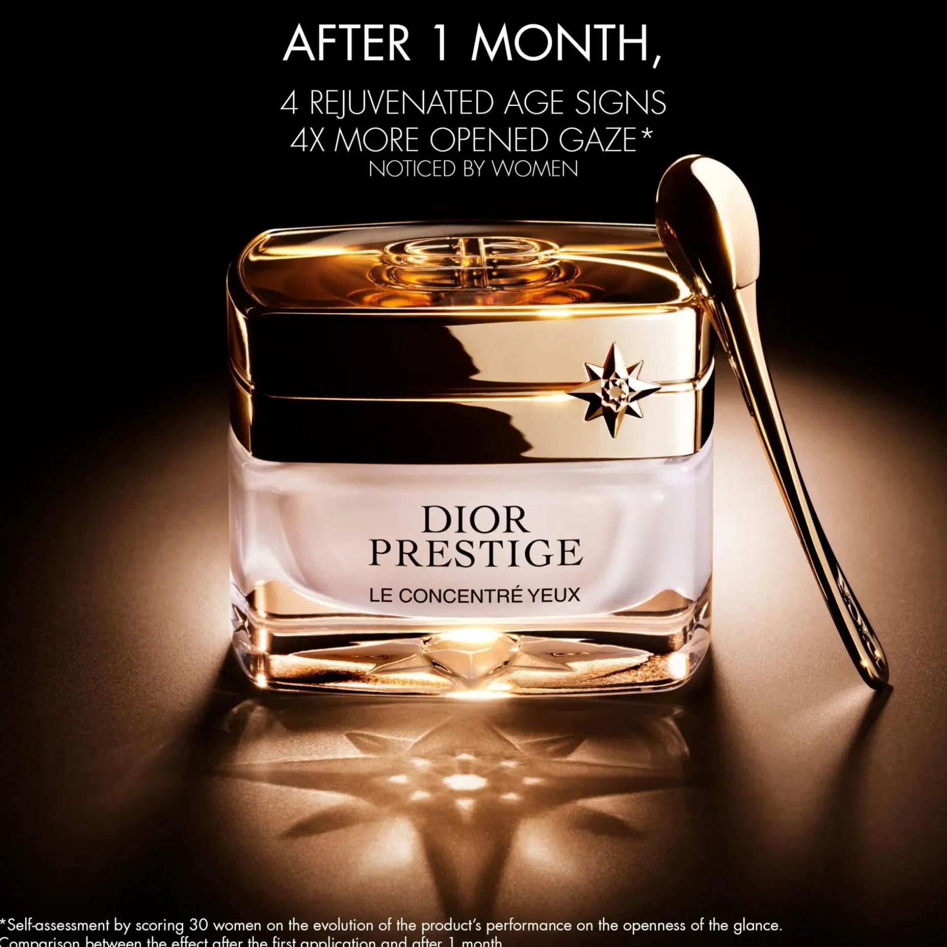Dior Prestige Le Concentré Yeux on silmänympärysiholle tarkoitettu Dior-ihonhoitotuote, joka auttaa vähentämään silmien alueen näkyviä väsymyksen merkkejä ja korjaa neljää ikääntymisen merkkiä.
