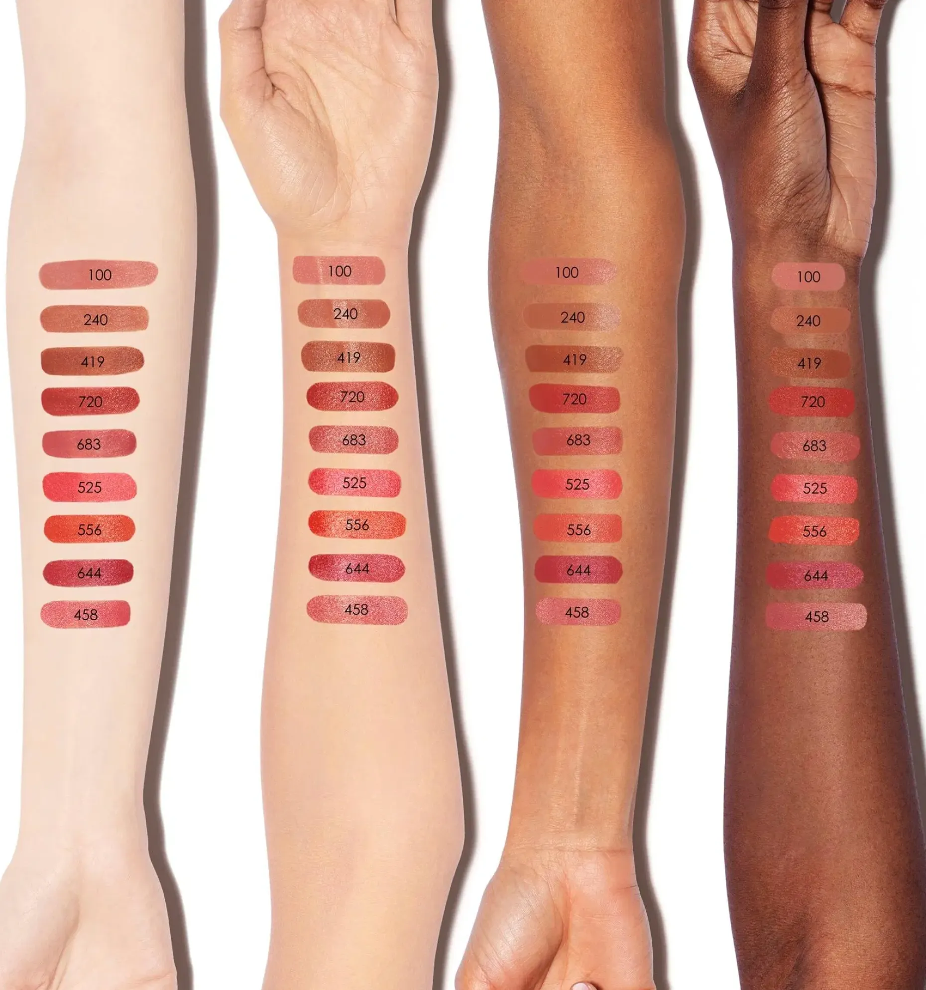 Satiinisen version voidemainen koostumus tekee huulista säihkyvät ja kauniisti muotoillut. Iho näyttää kimmoisalta ja täyteläiseltä ja saa intensiivistä hehkua ja pehmeyttä.