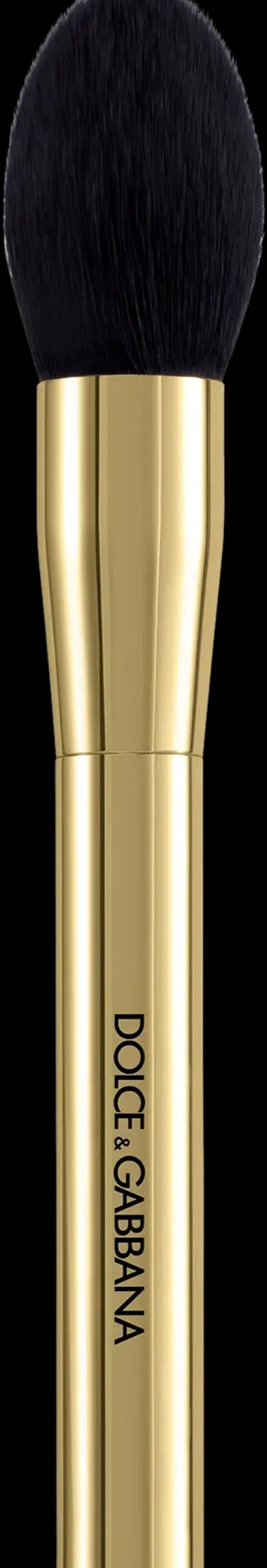Saat aikaan täydellisen auringon suuteleman ilmeen Bronzer Beauty Brush -siveltimellä. Sen suuri, pyöreä muoto ja tiiviit harjakset levittävät aurinkopuuterin tasaisesti kasvoille ja vartalolle tasaisen ja määritellyn lopputuloksen saavuttamiseksi. Erittäin pehmeillä mustilla vegaanisilla harjaksilla, Dolce & Gabbanan tunnusomaisista muotoilukoodeista inspiraationsa saaneella kultaisella alumiinikahvalla ja painavalla, ylellisellä tuntumalla tämä sivellin yhdistää eleganssin poikkeukselliseen suorituskykyyn.