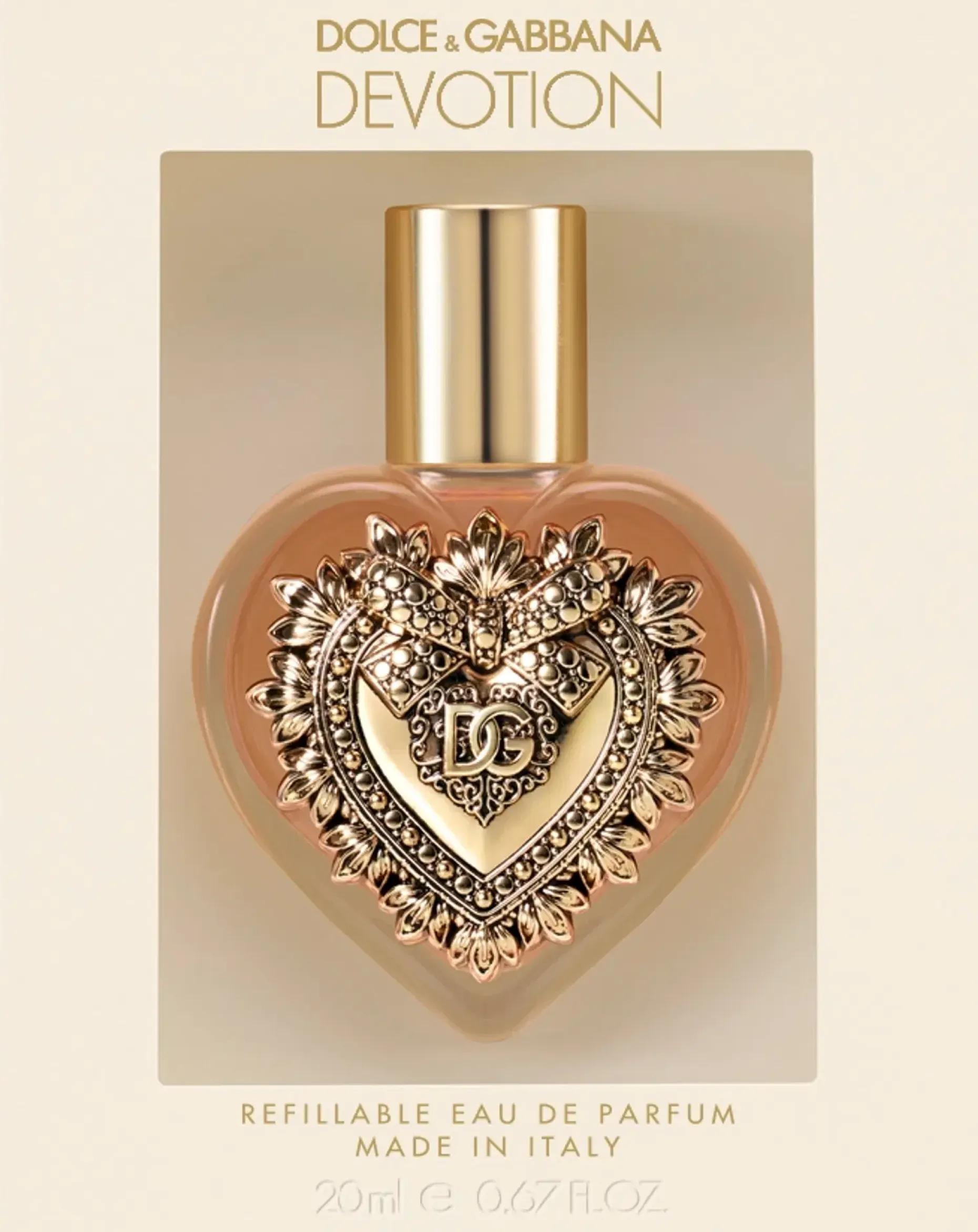 Dolce&Gabbana Devotion Eau de Parfum -tuoksu on aistillinen matka, viettelevä ja rauhoittava. Tuoksu tuo esiin positiiviset arvot, joita Dolce&Gabbana rakastaa ja jota symboloi pyhä sydänsinetti. Tuoksu, joka koostuu hienoista kontrasteista, kirkkaasta ensituoksusta sekä aistillisesta pohjatuoksusta.