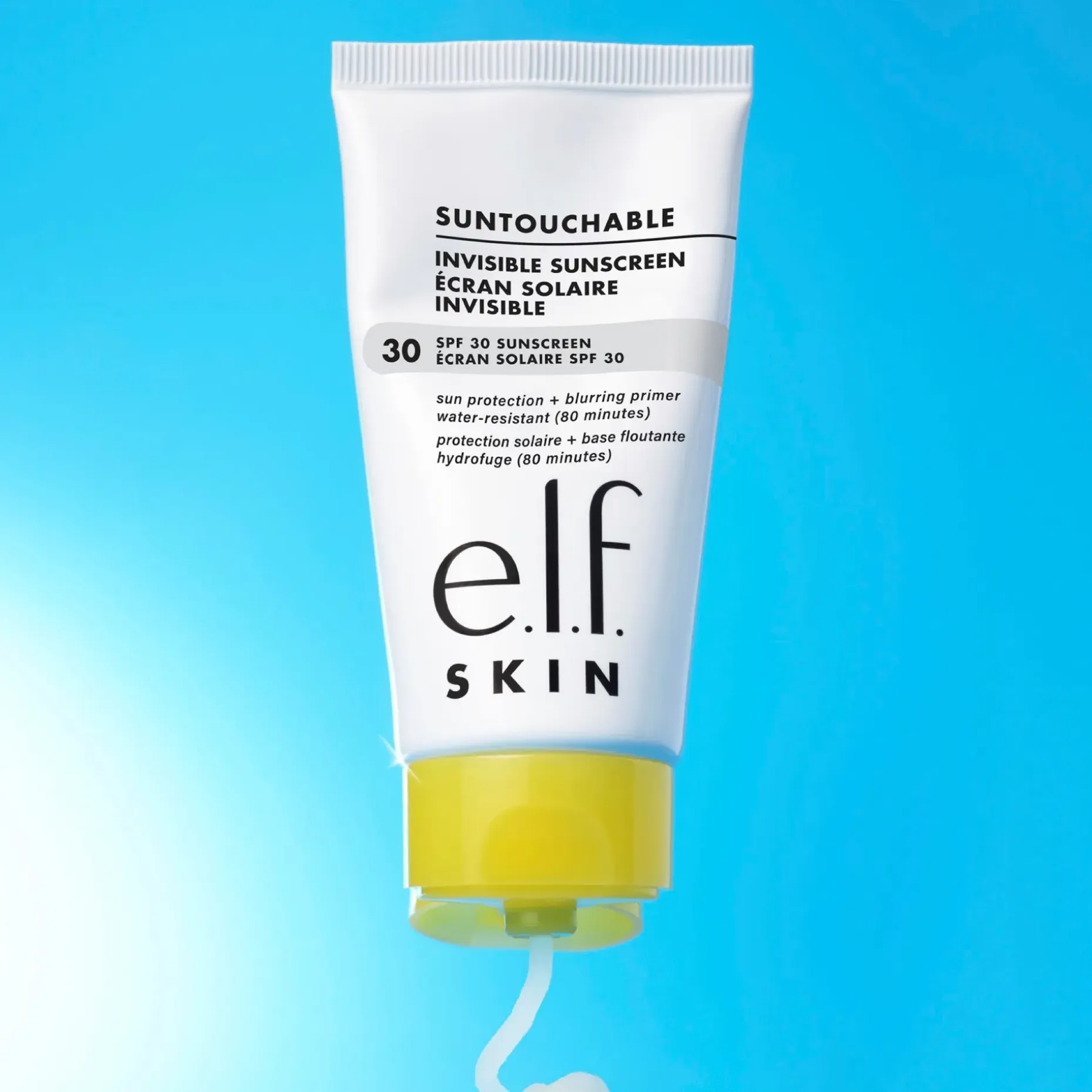 Selkeä valinta aurinkosuojaksi on e.l.f.:n SKIN’s Suntouchable! Invisible SPF 30. Tämä puhdas, kevyt geelimäinen aurinkovoide tarjoaa näkymättömän, laajakirjoisen aurinkosuojakertoimen 35, ei jätä valkoisia jälkiä ja sopii kaikille ihonsävyille. Rasvaton geelikoostumus toimii myös kasvojen pohjustustuotteena, joka tasoittaa ja kiinnittää meikin pitkäksi aikaa. Lisäksi koostumus sisältää aloe veraa ja valkohilpan siemenöljyä.