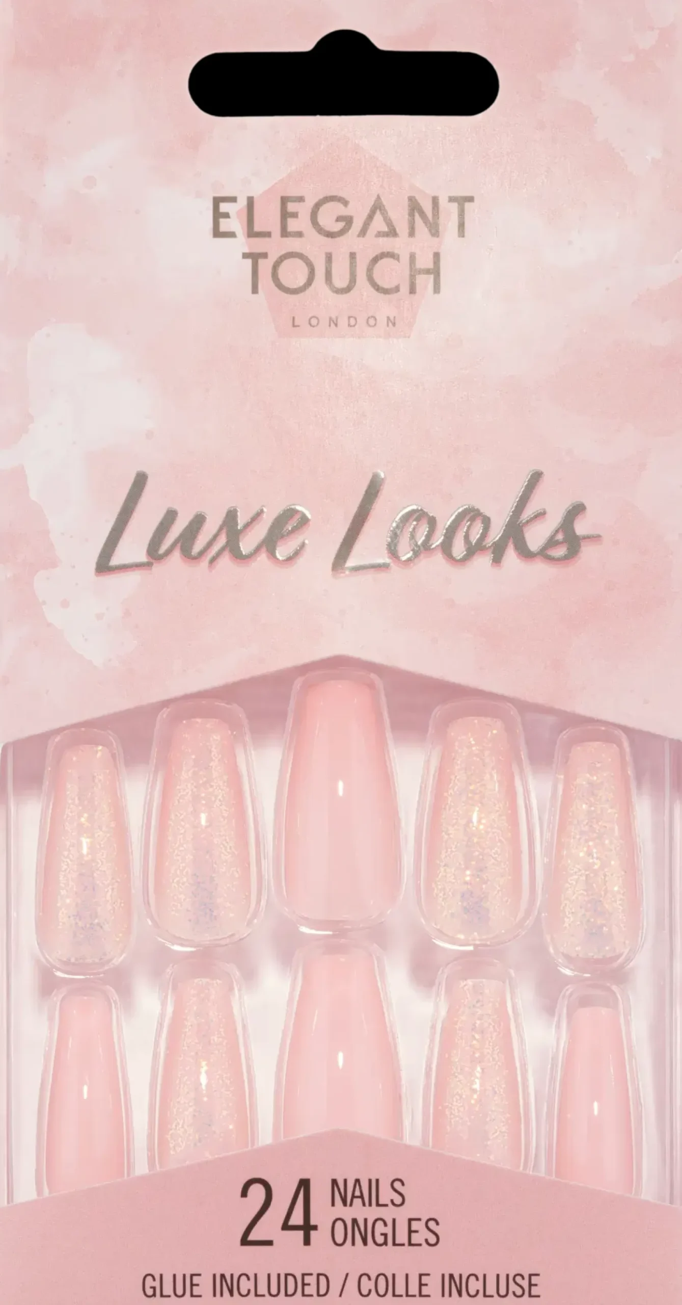 Elegant Touch -irtokynsillä luot helposti pitkäkestoisen ja huolitellun ilmeen. UV-geeliteknologiaa hyödyntävän menetelmän avulla saavutetaan lohkeamaton ja naarmuuntumaton irtokynsi, jonka väri pysyy kauniina ja kiiltävänä koko käyttöajan. Luxe Looks Bellini Baby -kynnet ovat upean vaaleanpunaiset ja osaan kynsistä lisätty kaunis glitteri antaa upean viimeisen silauksen.