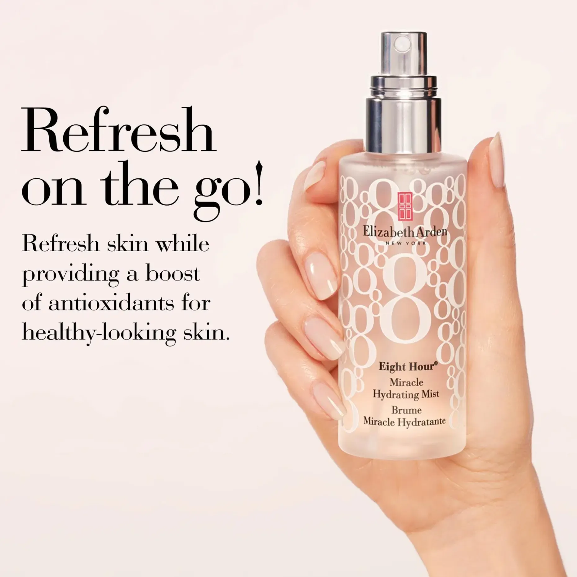 Eight Hour® Miracle Hydrating Mist koostuu runsaasti antioksidantteja sisältävästä superhedelmäyhdisteestämme, joka saa ihon tuntumaan virkistyneeltä ja näyttämään terveeltä. Ihoärsytystä lievittäviä uutteita sisältävä suihke auttaa kosketuksessa ihon kanssa viilentämään ja rauhoittamaan ihoa sekä kosteuttamaan sitä välittömästi. Iho näyttää jokaisella käyttökerralla terveeltä ja kosteutetulta.