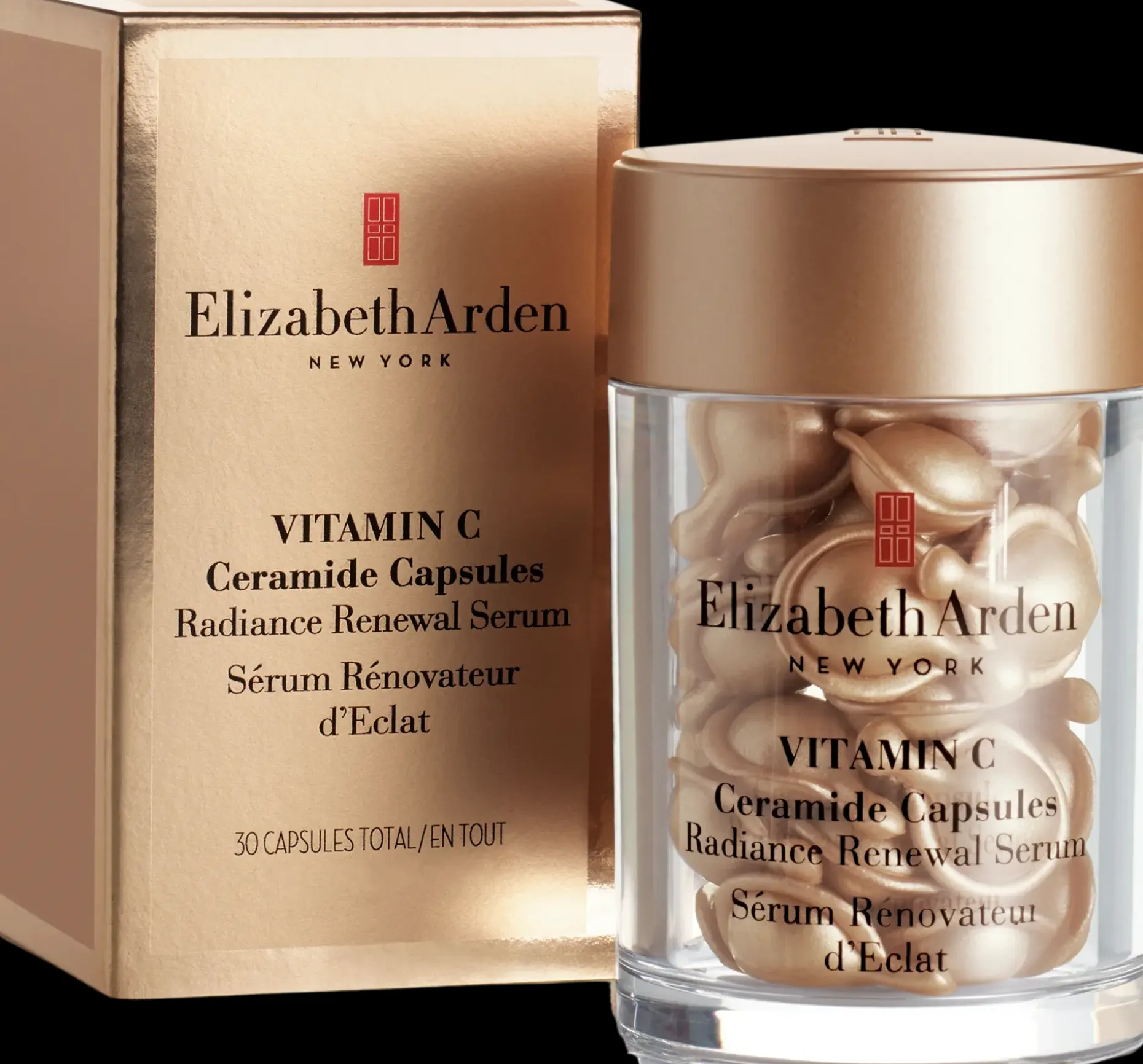 Elizabeth Arden Vitamin C Capsules saa sinut hehkumaan sisäisesti ja ulkoisesti. Elizabeth Arden Vitamin C -kapselit palauttavat ihon kirkkauden, tekevät siitä hehkuvan sekä ehkäisevät tummia läikkiä, ihon epätasaista väriä ja värimuutoksia. Suojaa vapailta radikaaleilta, jotka vaurioittavat ihoa ja voivat aiheuttaa sen ennenaikaista vanhenemista. Kohdennettu ihonhoitotekniikka Dual Action Brightening pysäyttää pigmenttimuutokset niiden lähteellä, eli syvällä ihossa, sekä vähentää auringon ja ympäristön aiheuttamaa mikroärsytystä. Sisältää muun muassa C- ja E-vitamiinia, keramideja 2 ja 3 sekä pehmentäviä öljyjä.