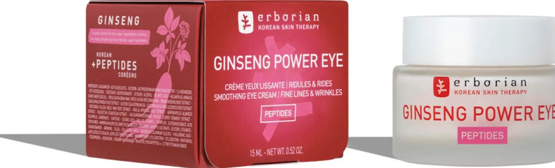Koe korealainen voima Erborianin silmänympärysvoiteessa, joka silottaa juonteet vain 3 minuutissa (2) ja antaa pitkäkestoisen tasoittavan vaikutuksen ryppyihin 14 päivän jälkeen (2). Tämä voide sisältää myös kofeiinia, joka vähentää turvotusta ja tummia silmänalusia näkyvästi – antamalla silmille raikkaamman ja pirteämmän ilmeen joka päivä!