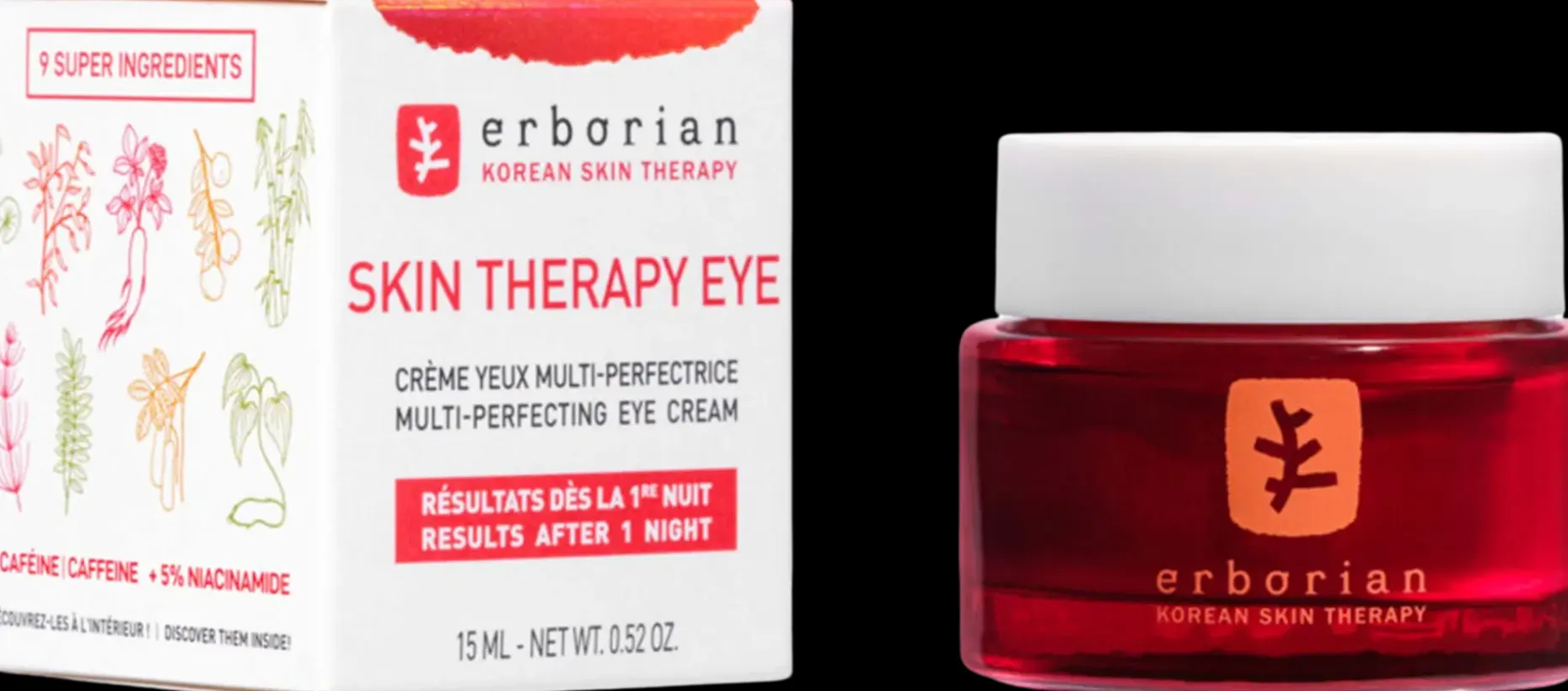 9 superraaka-ainetta, kuten korealainen ginseng, centella ja yuzu, jotka toimivat täydellisessä synergiassa kohdentuen 7 yleiseen silmänympärysongelmaan.