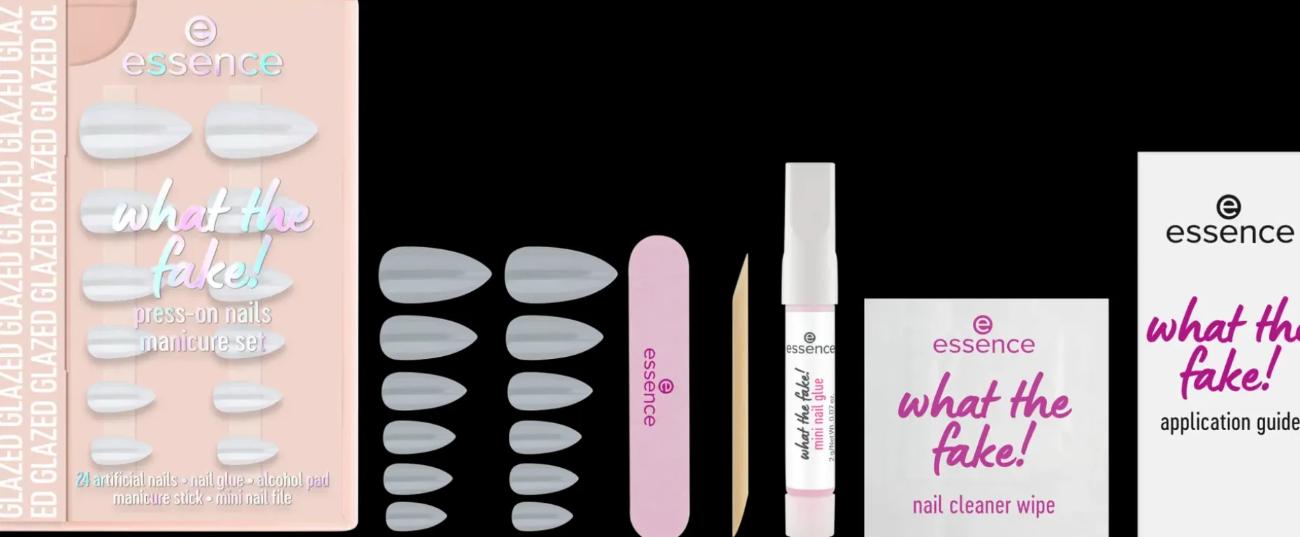 Tee kynnet muutamassa minuutissa essencen what the fake! tekokynsillä PRESS-ON NAILS -manikyyrisarja 01 GLAZED. Tämä sarja sisältää 24 laadukasta kynttä 12 eri koossa. Ne on suunniteltu mantelimaisena ja hienovaraisen valkoisella lasitetulla efektillä. Tarkan istuvuuden ja laadun ansiosta kynnet mukautuvat täydellisesti luonnolliseen kynsien muotoon – ja lopputulos on salonkilaatuinen. Sarjaan kuuluu myös kynsiliima, manikyyritikku, minikynsiviila ja kynsienpuhdistuspyyhe – kaikki tarvittava sujuvaan ja pitkäkestoiseen manikyyriin. Helppo levittää, ja ihastut varmasti!