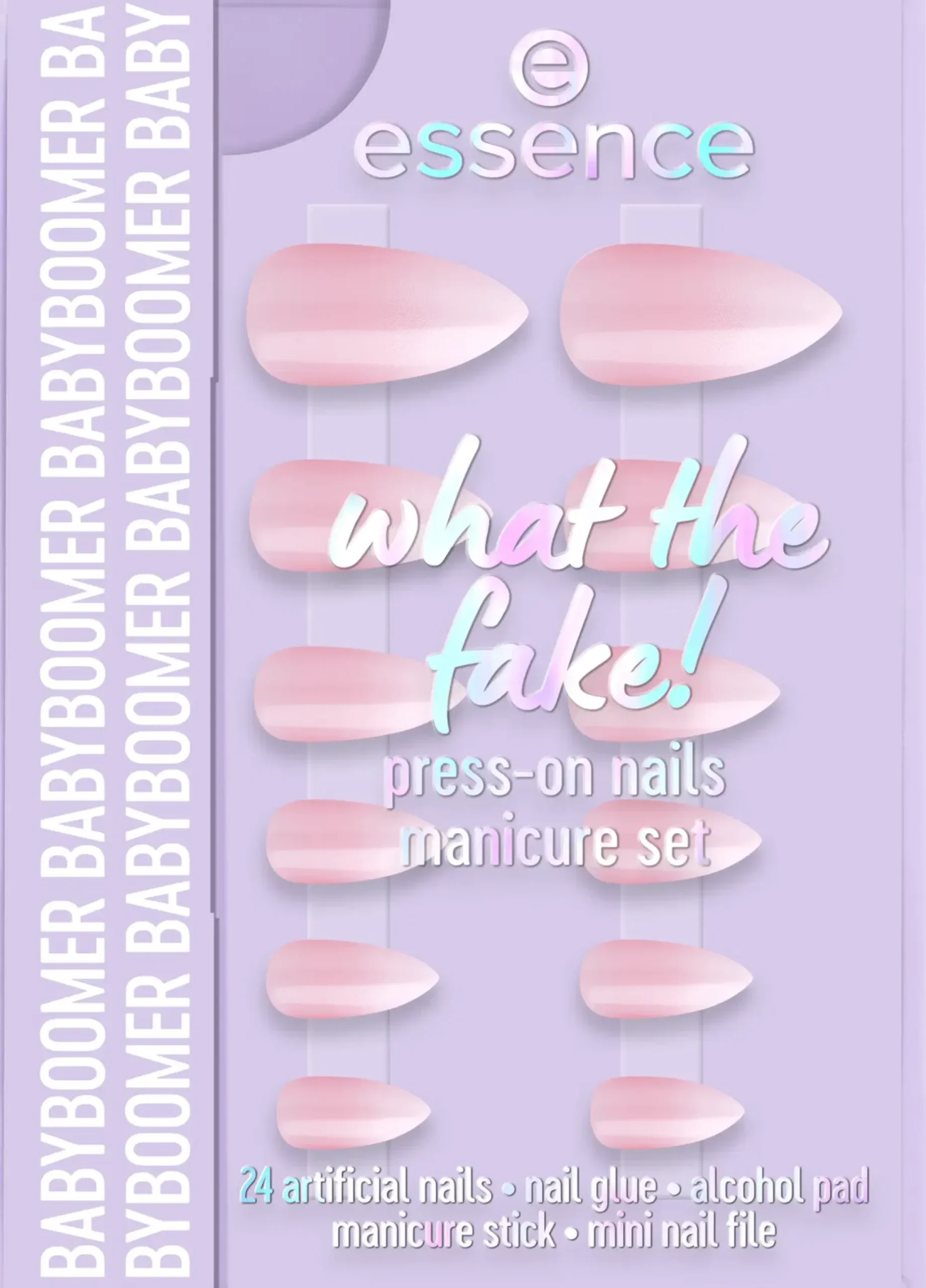 Tee kynnet muutamassa minuutissa essencen what the fake! tekokynsillä PRESS-ON NAUILS -manikyyrisarja 03 BABYBOOMER. Tämä pakkaus sisältää 24 laadukasta painokynttä 12 eri koossa. Ne on suunniteltu mantelin muotoiseksi kauniissa klassisessa baby boomer -sävyssä, jossa on pehmeä pinkki perusväri. Tarkan istuvuuden ja laadun ansiosta kynnet mukautuvat täydellisesti luonnolliseen kynsien muotoon – ja lopputulos on salonkilaatuinen. Sarjaan kuuluu myös kynsiliima, manikyyritikku, minikynsiviila ja kynsienpuhdistuspyyhe – kaikki tarvittava sujuvaan ja pitkäkestoiseen manikyyriin. Helppo levittää, ja ihastut varmasti!