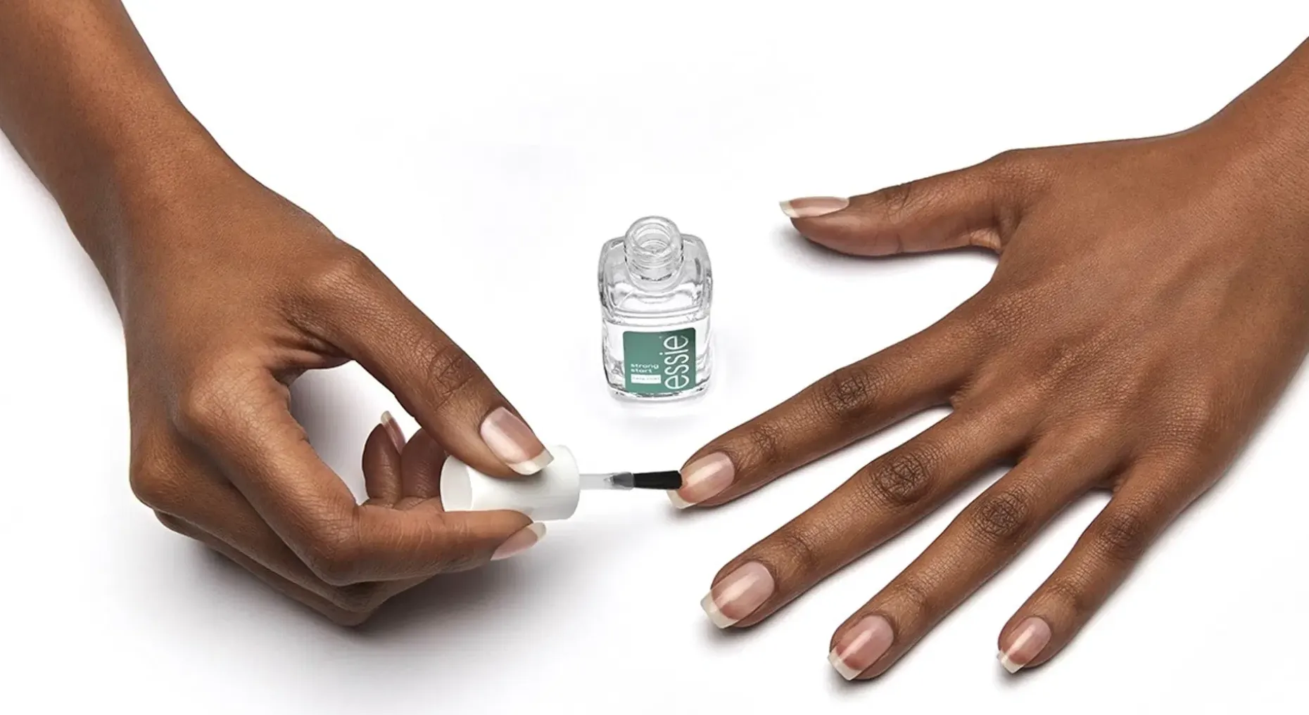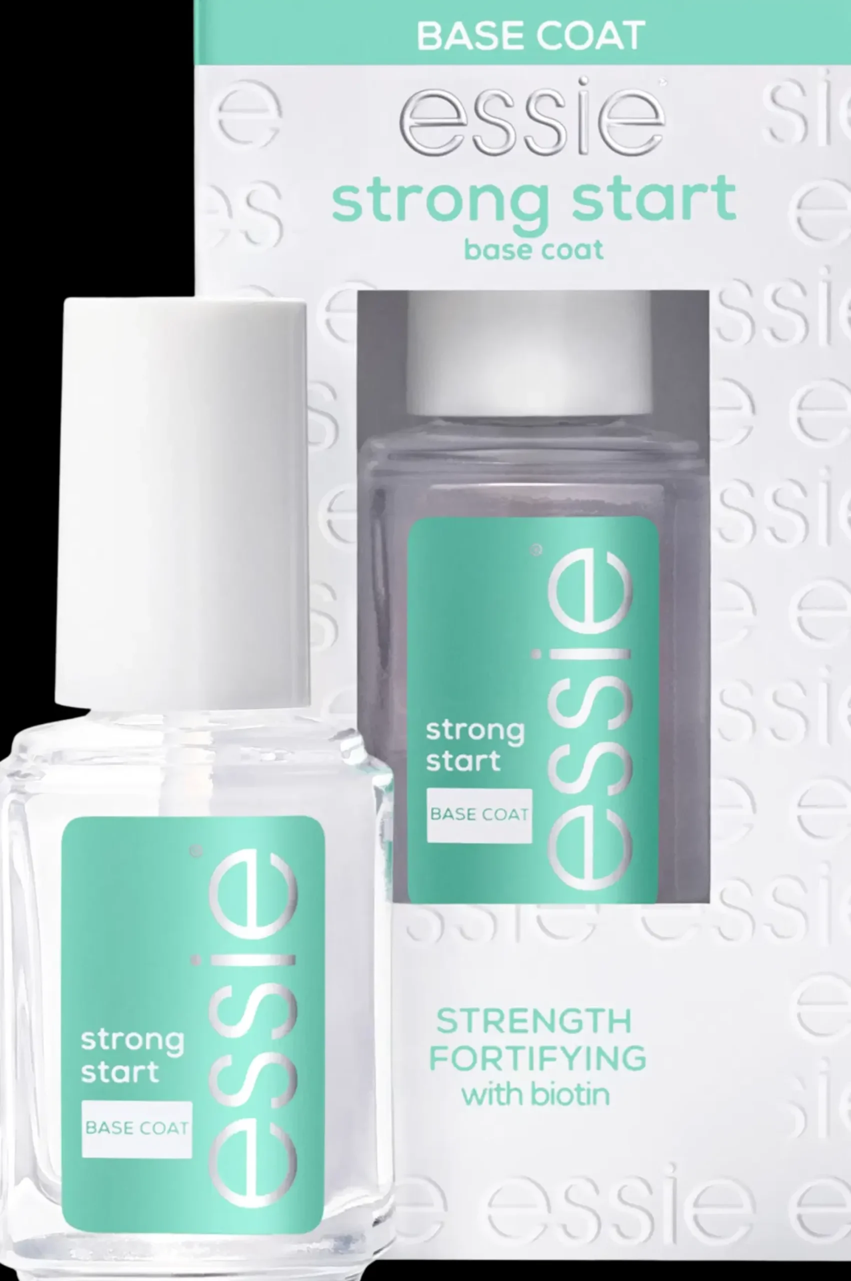 – Essie base coat ’Strong Start’ on kynsiä vahvistava aluslakka, jonka koostumus sisältää biotiinia. Se auttaa vahvistamaan heikkoja ja hauraita kynsiä. Lopputulos: kaunis manikyyri. vahvemmat kynnet, vähemmän lohkeilua, liuskoittumista ja katkeilua. Voidaan käyttää joka yksinään tai värilakan alla. KÄYTTÖ: Levitä kerros Essie Strong Start -aluslakkaa paljaalle kynnelle ja anna kuivua. Levitä 2 kerrosta Essie-värilakkaa ja viimeistele kerroksella Essie- päällyslakkaa.