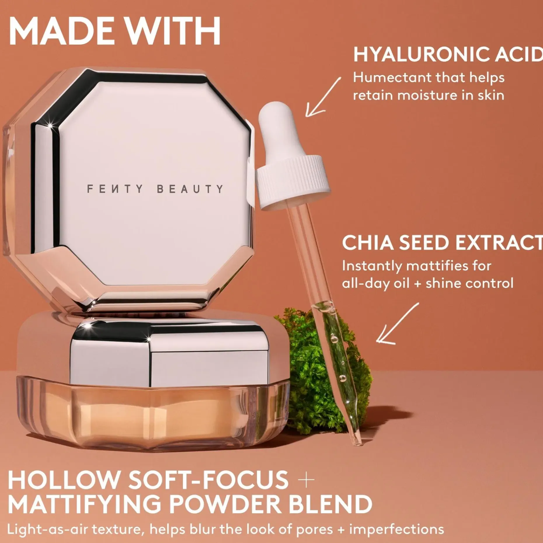 SILICA, MICA, CAPRYLIC/CAPRIC TRIGLYCERIDE, HYDROGEN DIMETHICONE, COCONUT ACID, SALVIA HISPANICA SEED EXTRACT, CAPRYLYL GLYCOL, ETHYLHEXYLGLYCERIN, SODIUM HYALURONATE, LEUCONOSTOC/RADISH ROOT FERMENT FILTRATE, TRIETHOXYCAPRYLYLSILANE, IRON OXIDES (CI 77491, CI 77492, CI 77499). A