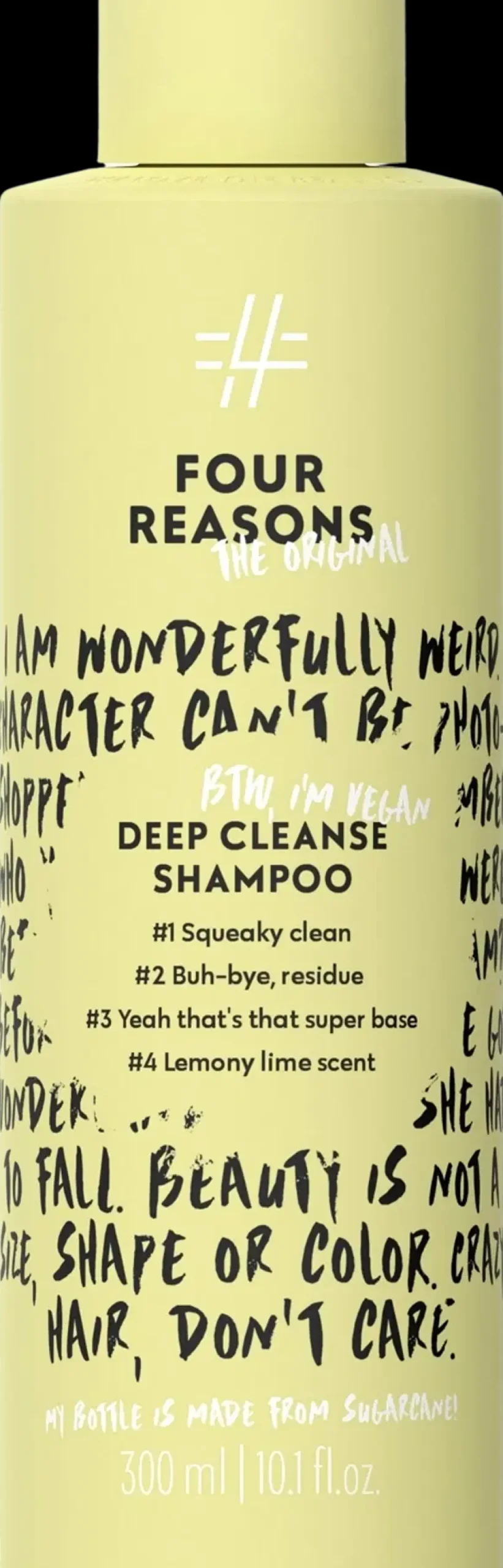 Syväpuhdistava Four Reasons Original Deep Cleanse -shampoo poistaa hiuksista tehokkaasti muotoilutuotejäämät ja epäpuhtaudet.