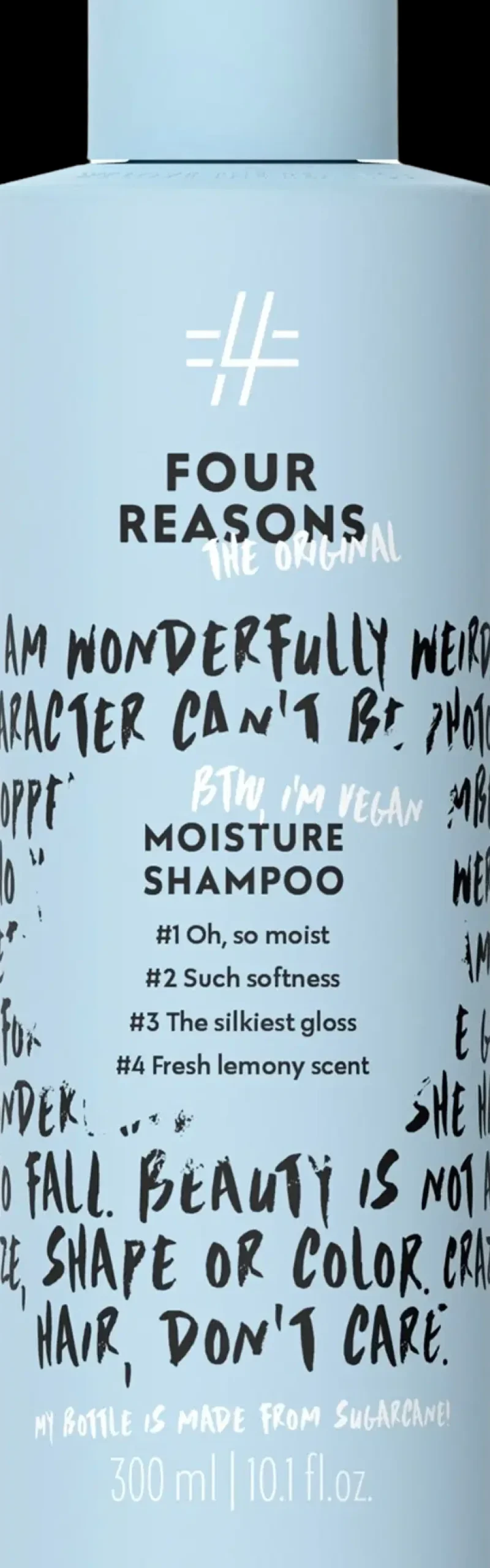 Kosteuttava Four Reasons Original Moisture -shampoo puhdistaa hellävaraisesti ja tekee hiuksista silkkisen pehmeät sekä kiiltävät.