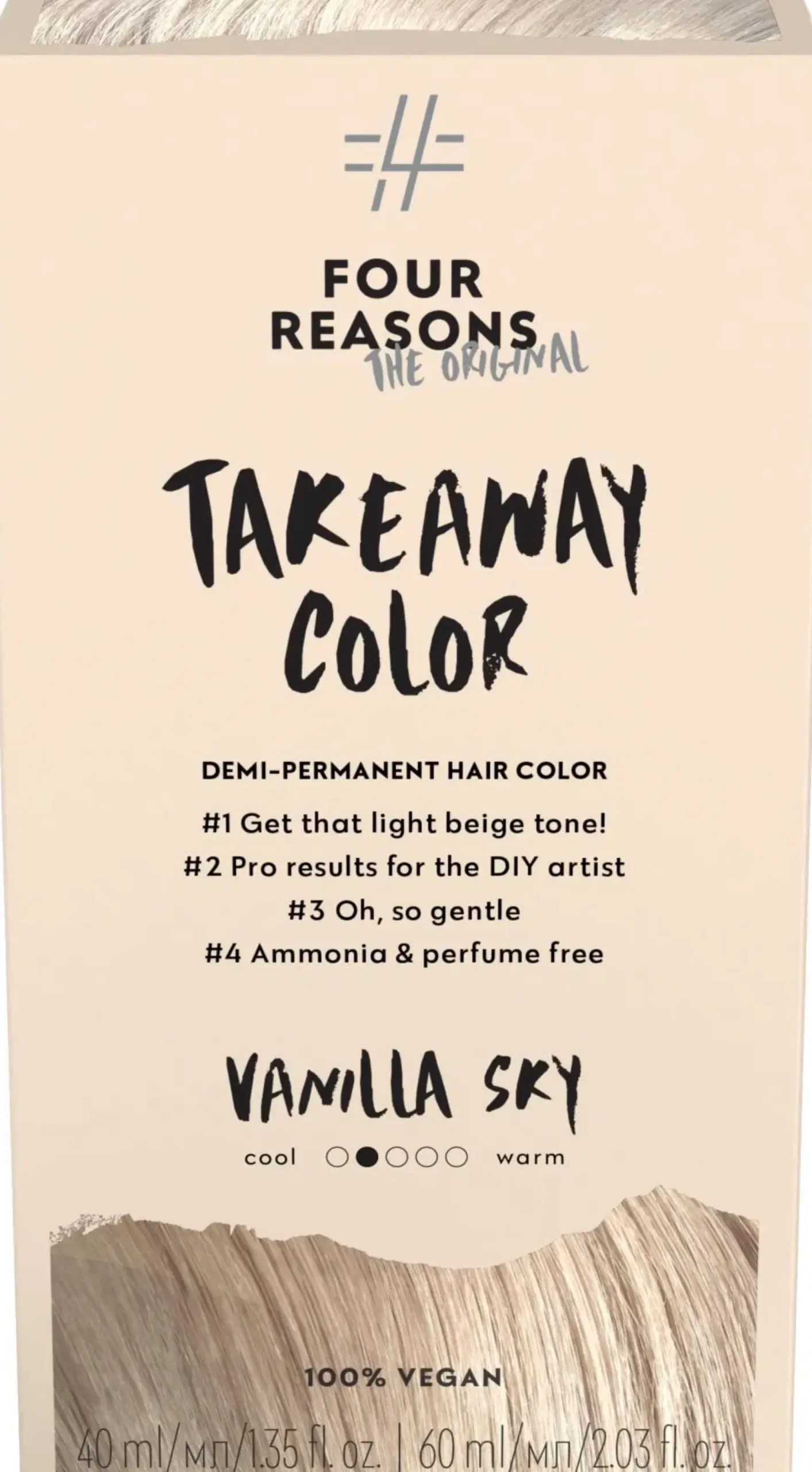 Takeaway Color on ammoniakiton ja hajusteeton kestosävyte, jolla saat kauniin värjäystuloksen hellävaraisesti, helposti ja varmasti. Väristä tulee eloisa, vivahteikas ja erittäin kiiltävä. Ainutlaatuinen koostumus mahdollistaa täyteläisen, ajan myötä kauniisti pehmentyvän lopputuloksen. Ei värikypärää − häivyttää myös harmaat pehmeästi ja luonnollisesti