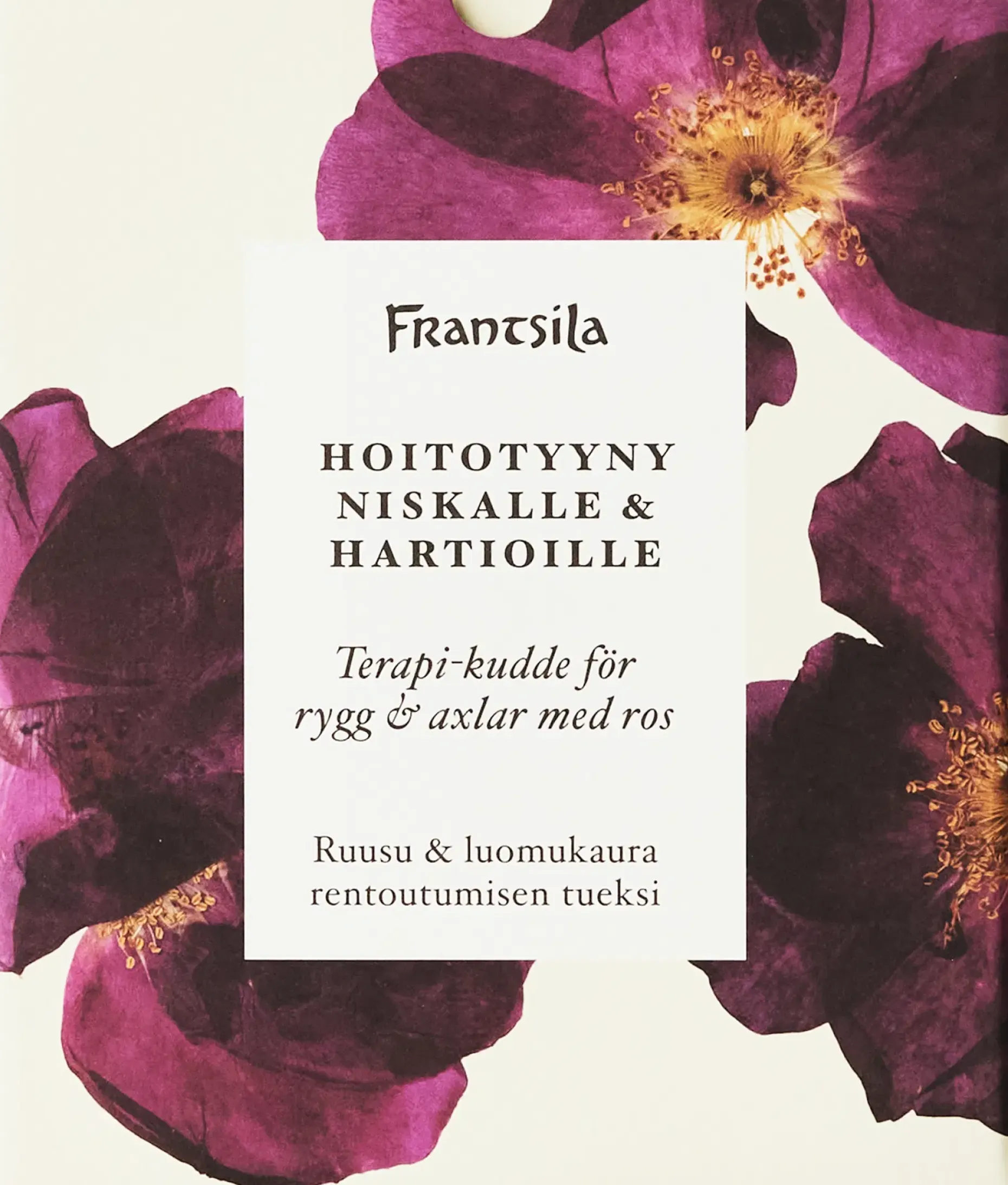 Monipuolinen ruusun tuoksuinen kaurahoitotyyny niska-hartia-alueen rentoutumisen tueksi. Käytä lämpimänä tai viileänä tarpeen ja hoitoalueen mukaan.