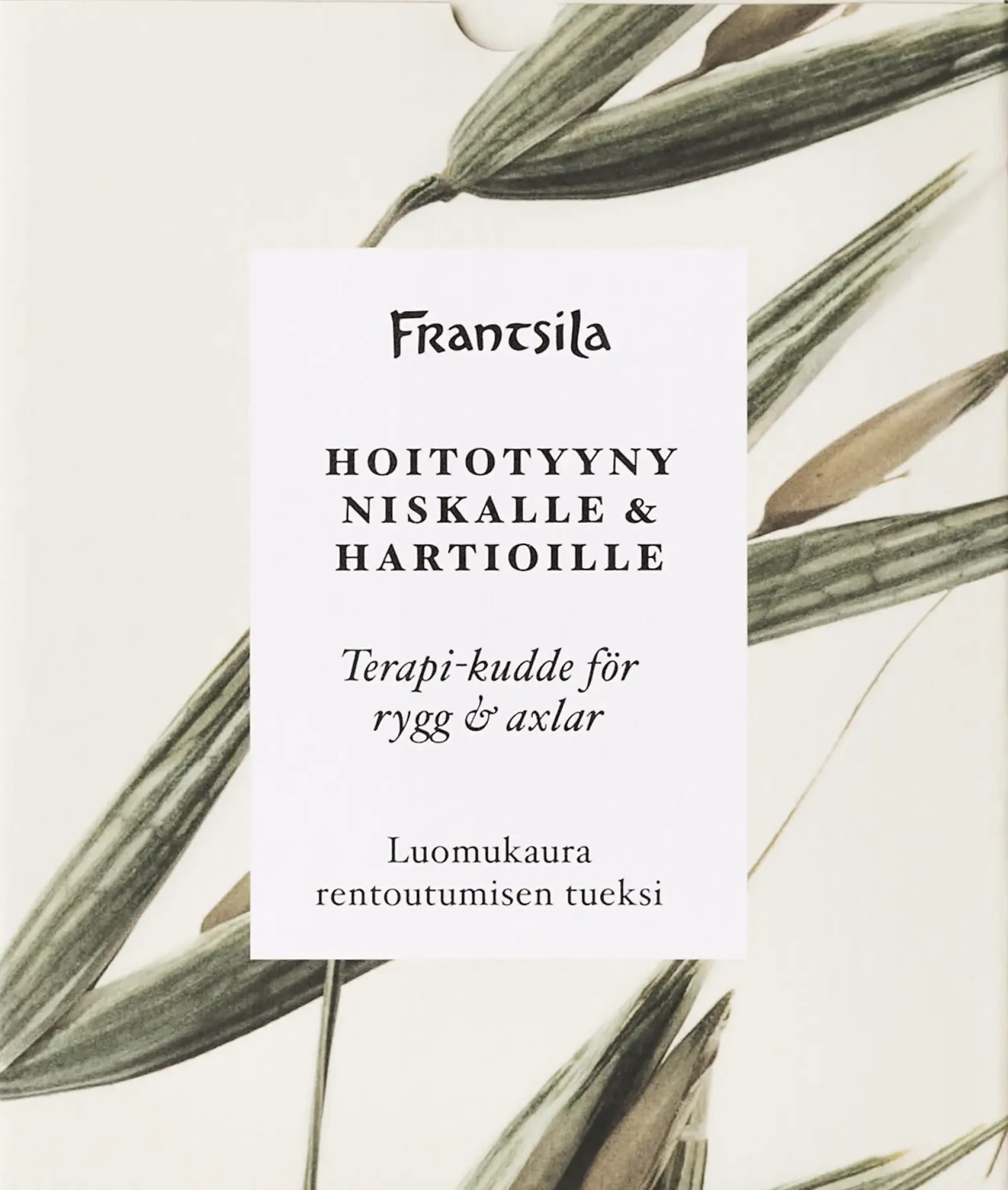 Helppokäyttöinen luomukaurahoitotyyny selän ja niska-hartia-alueen rentoutumisen tueksi. Käytä lämpimänä tai viileänä tarpeen ja hoitoalueen mukaan.
