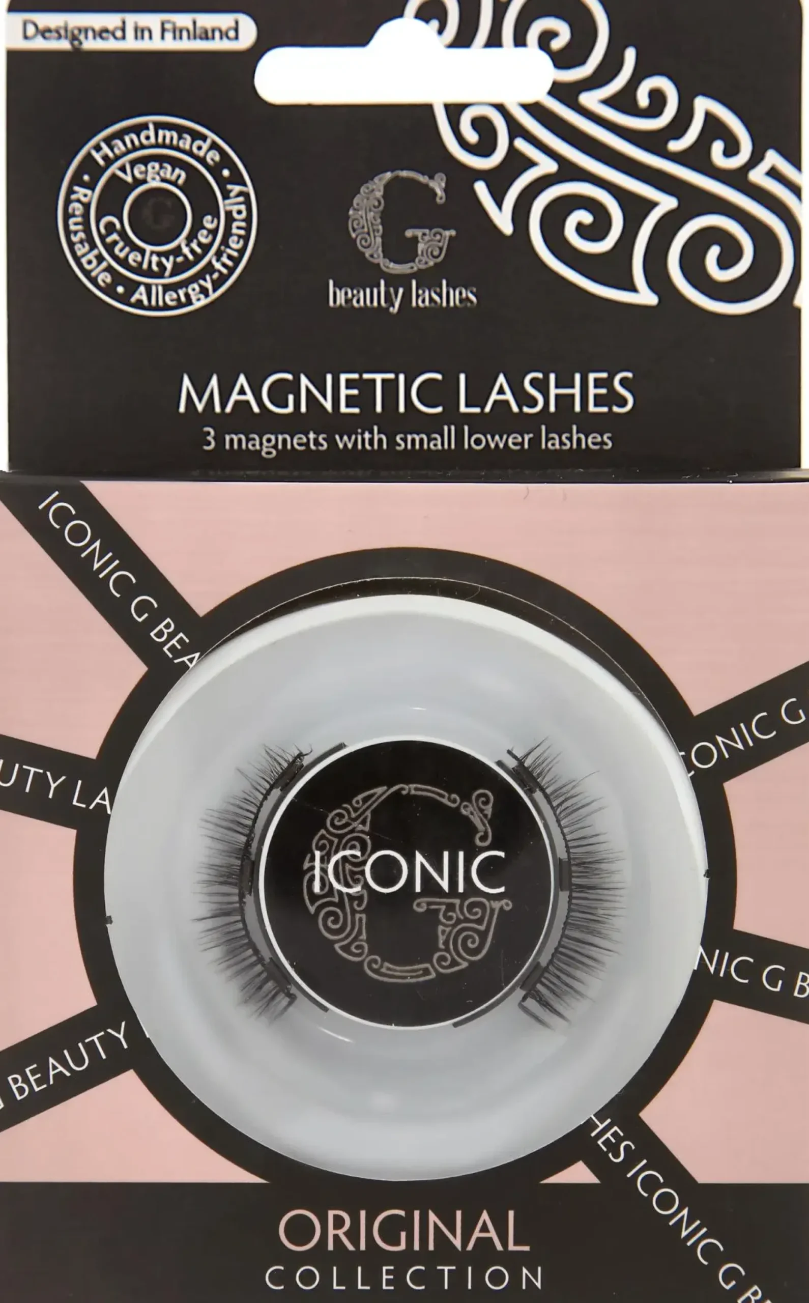 Iconic Magneettiripset ovat luonnolliset ja sopivasti volyymia antavat erittäin laadukkaat kolmen magneetin ripset. Ne kiinnitetään pakkauksen mukana tulevilla kolmella pienellä magneetilla tai erikseen myytävällä magneettieyelinerilla. Ripsistä voi tarvittaessa leikata yhden magneetin pois, jolloin ripset korostavat vain silmän ulkonurkkia. Näiden ripsien valmistuksessa on käytetty uusinta teknologiaa ja ne on valmistettu erikoisesta kuidusta mikä maatuu vuosien aikana eikä jää kuormittamaan ympäristöä ikuisesti. Ripsinauha on pehmeää ja taipuisaa puuvillaa.