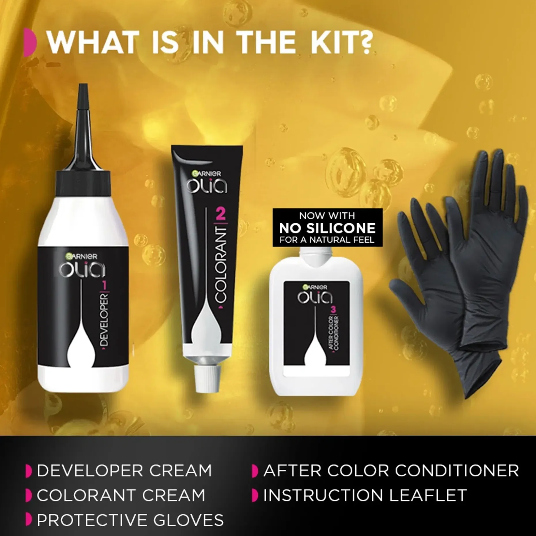 Garnier Olia 3.23 Black Chocolate, kestoväri ilman ammoniakkia, jonka koostumus sisältää 60% öljyjä*, antaa maksimaalisen värjäystuloksen ja tekee hiuslaadusta näkyvästi paremman. Olia 3.23 peittää harmaat hiukset jopa 100% ja on miellyttävä hiuspohjalle. 98% naisista ei havainnut näkyviä vaurioita** hiuksissaan. *Värivoiteessa **Kuluttajatutkimus, 262 naista, käytettäessä koko pakkaus.