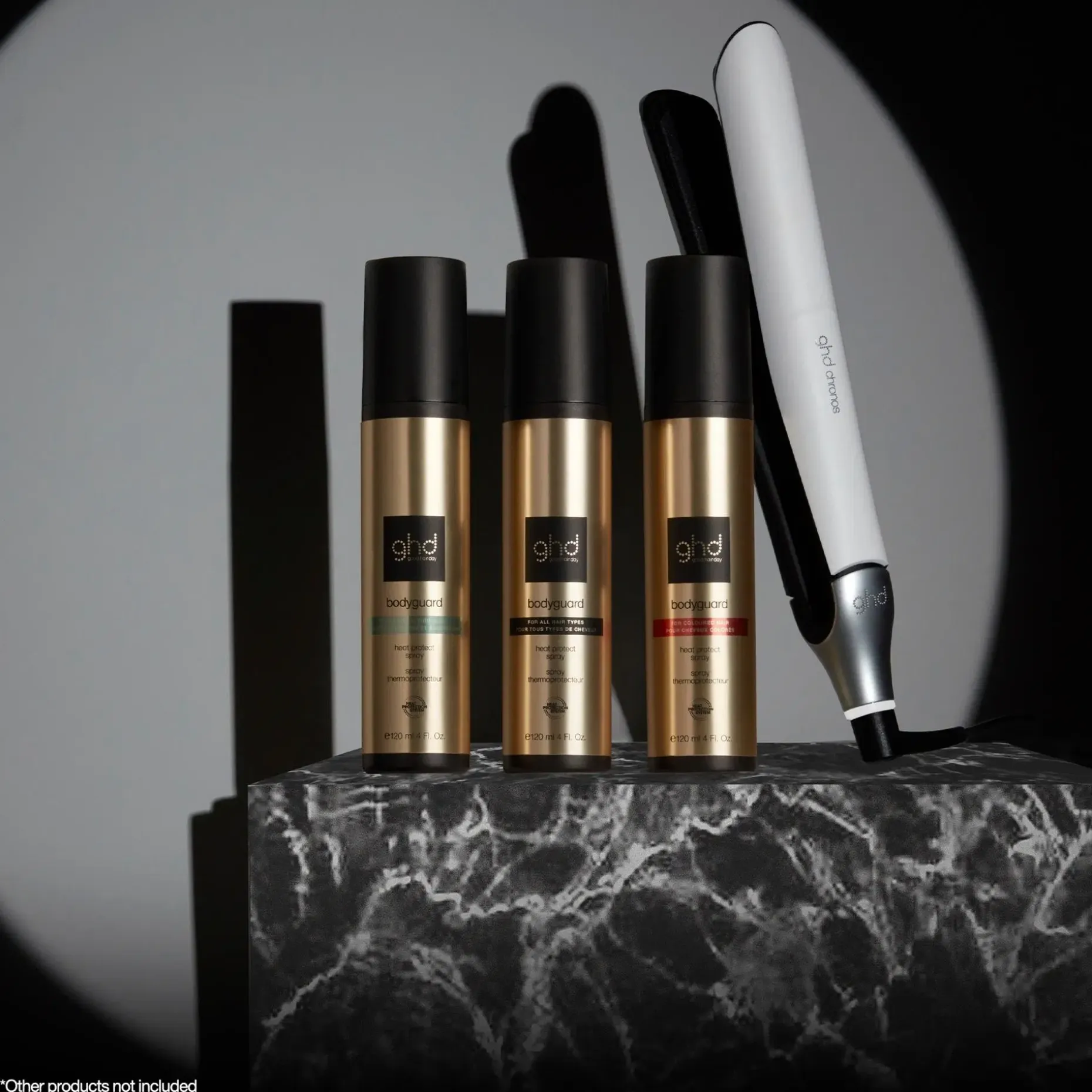 ghd bodyguard-lämpösuojasuihke värjätyille hiuksille – näkymätön ja kevyt lämpösuojakerros suojaamaan hiuksia lämmöltä, nyt värjätyille hiuksille.