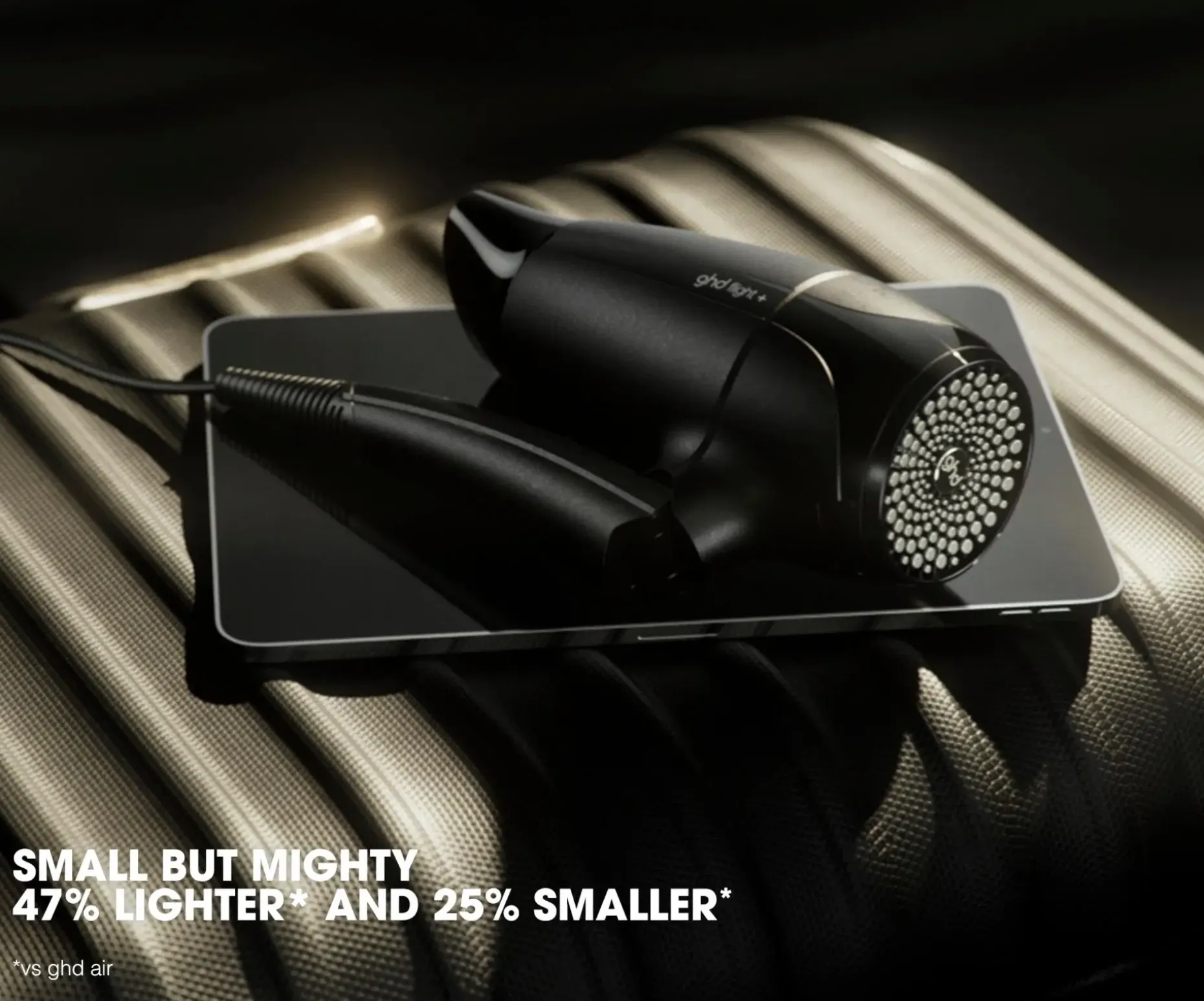 Uusi ghd flight+ -matkahiustenkuivaaja on tehokas, ensiluokkainen ja kannettava. Suunniteltu täydelliseksi matkakumppaniksi.
