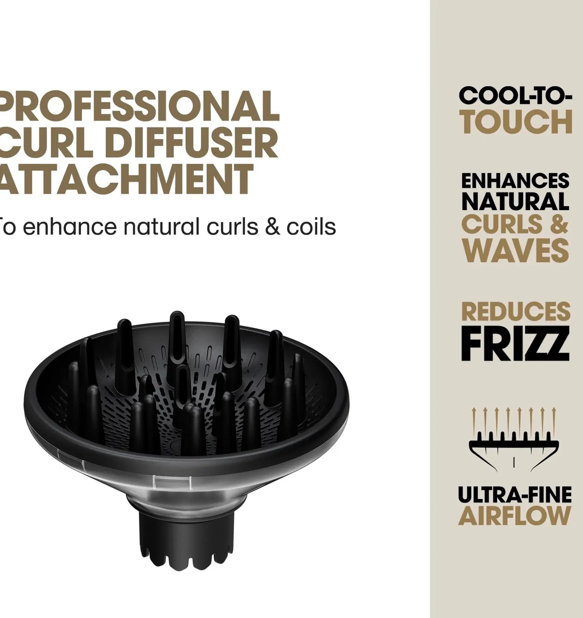 Varustettu ghd halo™ dual-airflow -teknologialla. Tämä hiusdiffuusori ohjaa toissijaisen ilmavirran pääilmavirran sisällä, mikä vähentää pörröisyyttä ja korostaa kauniisti luonnollisia kiharoita ja laineita. Syvä kulhomuotoilu takaa nopean ja tasaisen kuivumisen.
