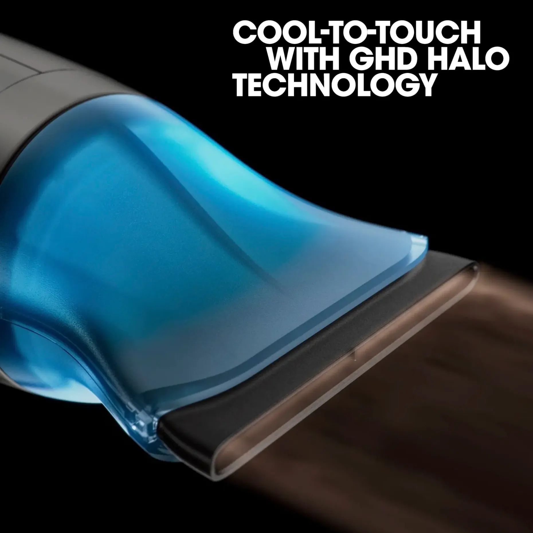 Sen tarkka kuuman ilmavirran teknologia kohdistaa lämmön sinne, missä sitä eniten tarvitset. Se tarjoaa kuumemman ilmavirran, joka antaa jokaiselle tyylille selkeyttä ja säihkyvää kiiltoa. Konsentraattorisuutin pysyy viileänä älykkään ghd halo™ dual-airflow -teknologian ansiosta. Tämä teknologia ohjaa viileää ilmaa ja pitää laitteen miellyttävänä käyttää muotoilun aikana.
