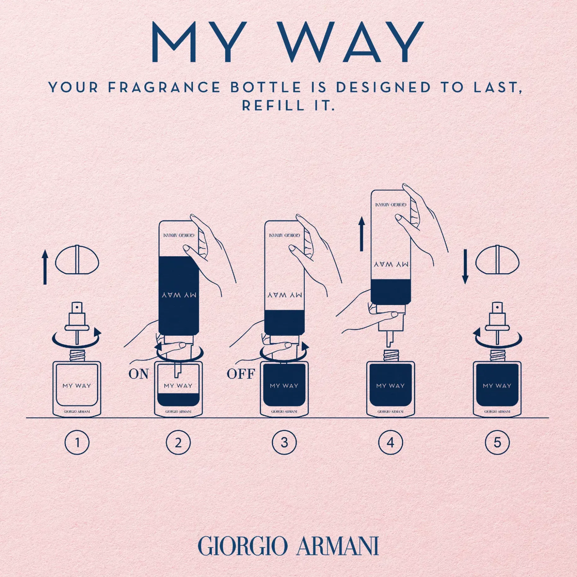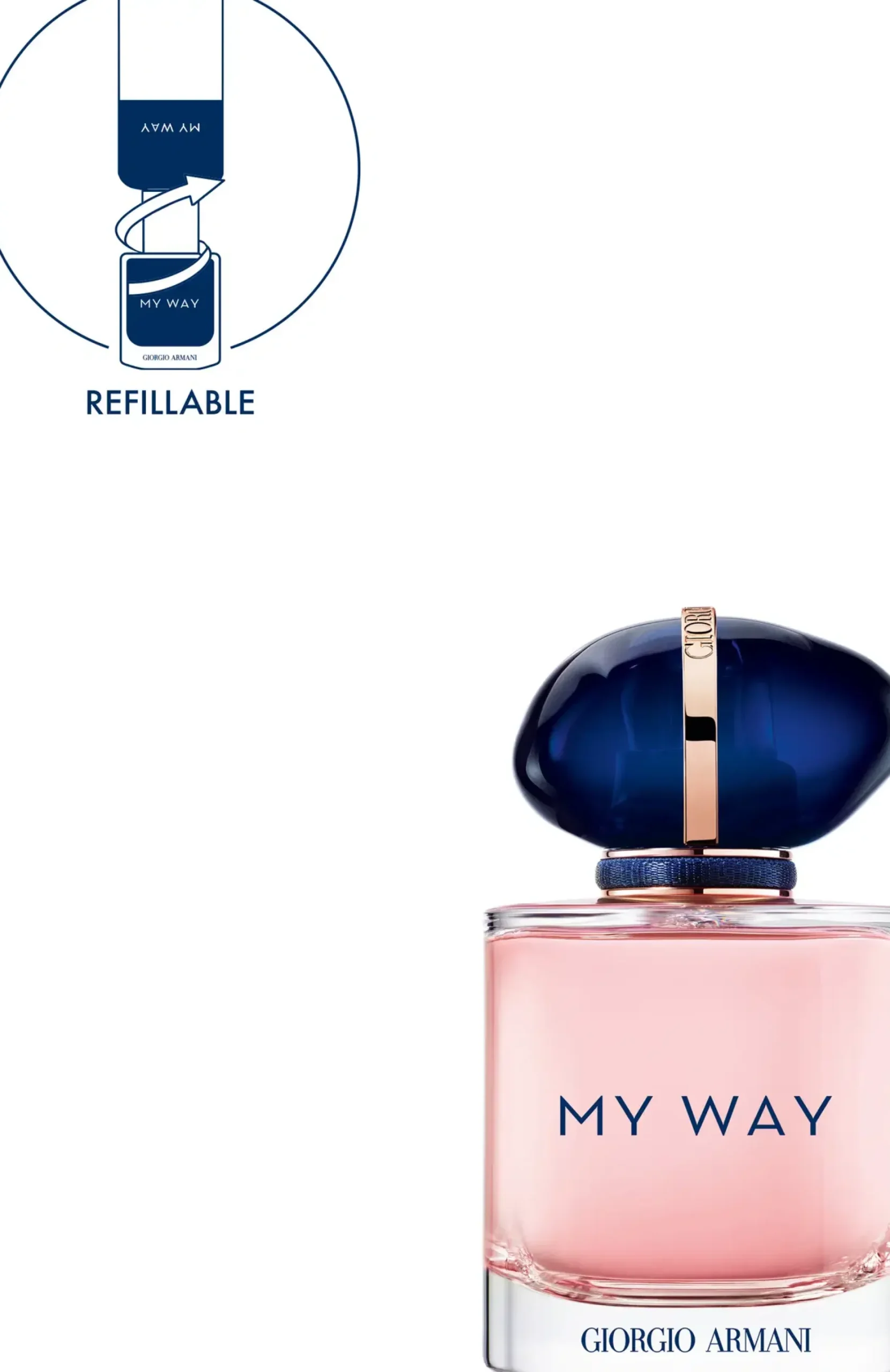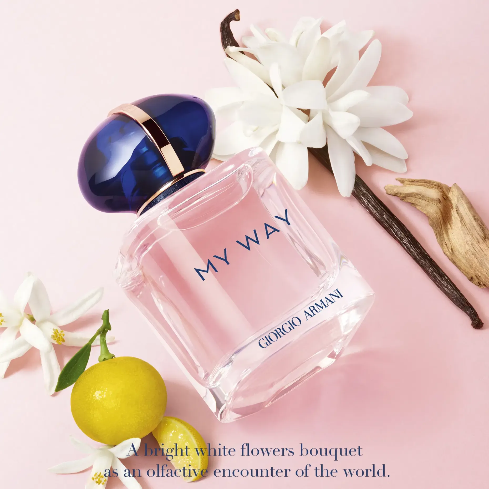 Tutustu uuteen Giorgio Armani My Way -tuoksuun. My Way rohkaisee sinua laajentamaan maailmankatsomustasi ja kutsuu mukaan uusiin merkityksellisiin kohtaamisiin ympäri maailmaa. Kirkas valkoisten kukkien kimppu on kiedottu talismaninomaiseen pulloon, joka symboloi maailmaa.