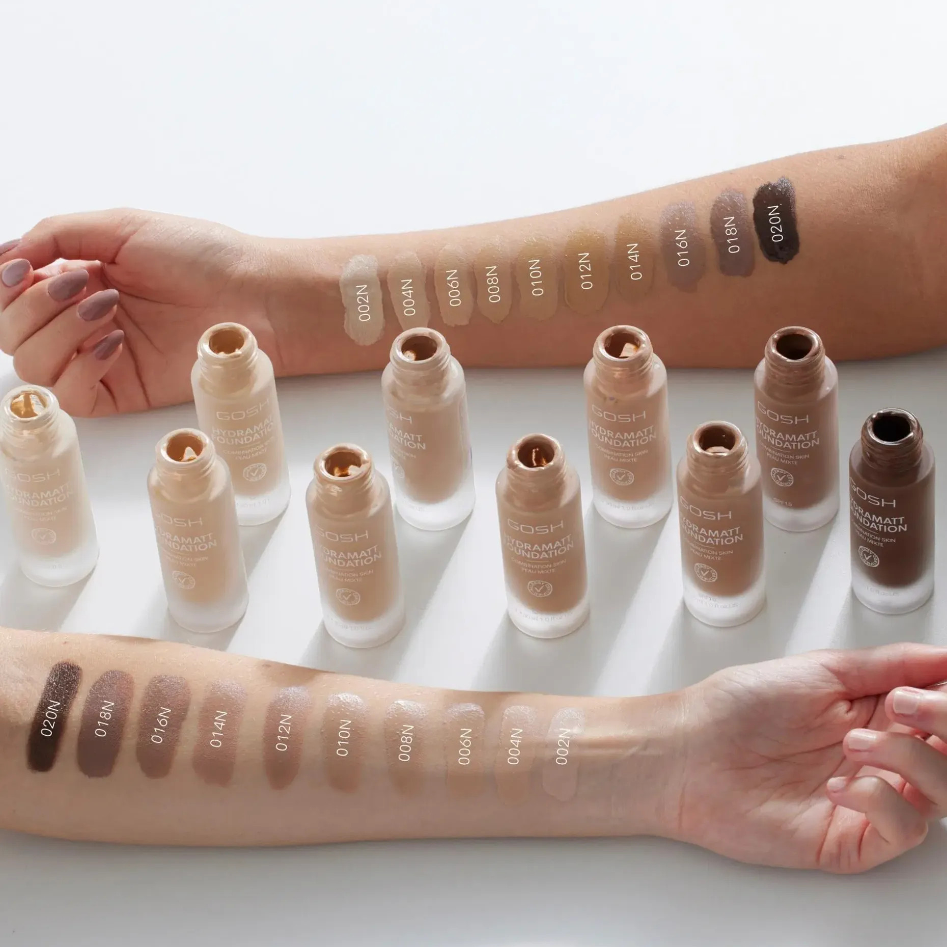 GOSH Hydramatt Foundation –meikkivoide kuin oma ihosi, mutta parempi. Uusimman teknologian ansiosta olemme saaneet sisällytettyä tähän meikkivoiteeseen kosteuttavia ainesosia, jotka kosteuttavat ja ravitsevat ihoa. Iho näyttää välittömästi tasaiselta, raikkaalta sekä kauniin mattaiselta. Tuote on hajusteeton, allergiasertifioitu ja vegaaninen.