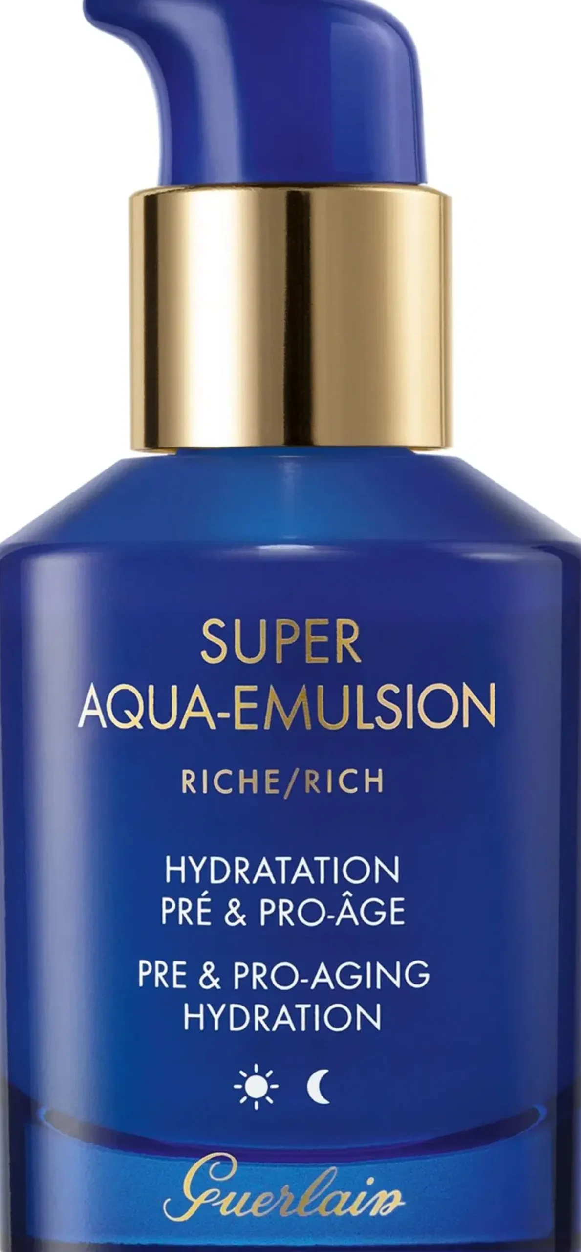 Guerlain Super Aqua Rich emulsio kosteuttaa ihoa pitkäaikaisesti, antaen tehokkaan suojan ja korjaa ensimmäisiltä ikääntymisen merkeiltä. Aquacomplex Advanced-yhdiste tehostaa nestekiertoa antaen välittömän kosteutuksen ja ennaltaehkäisee kosteudenpuutetta ihon syvemmissä kerroksissa. Aquabiotic System-yhdiste vahvistaa ihoa ja tukee ihon luonnollista toimintaa. Ihon kunto paranee ja iho näyttää heleältä, tasaiselta ja kauniilta. Suositellaan kuivalle ja erittäin kuivalle iholle.