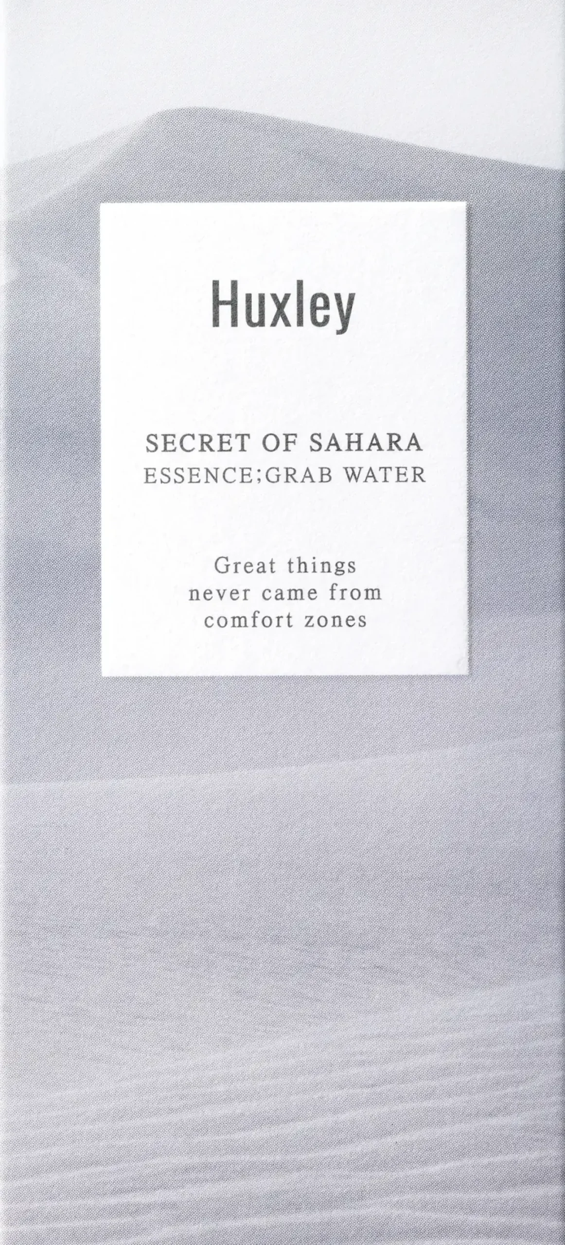 Huxley Essence; Grab Water -seerumi kosteuttaa ihoa tehokkaasti nopeasti imeytyvällä, tahmaamattomalla koostumuksellaan. Sisältää viikunakaktuksen siemenöljyä sekä hyaluronihappoa, joka ovat tunnettu kosteuttavasta vaikutuksestaan. Antioksidanttinen sekoitus amazoninrypälemyrttiuutetta, acai-marjauutetta, japaninaprikoosiuutetta ja piparminttua rauhoittavat ja virkistävät ihoa.