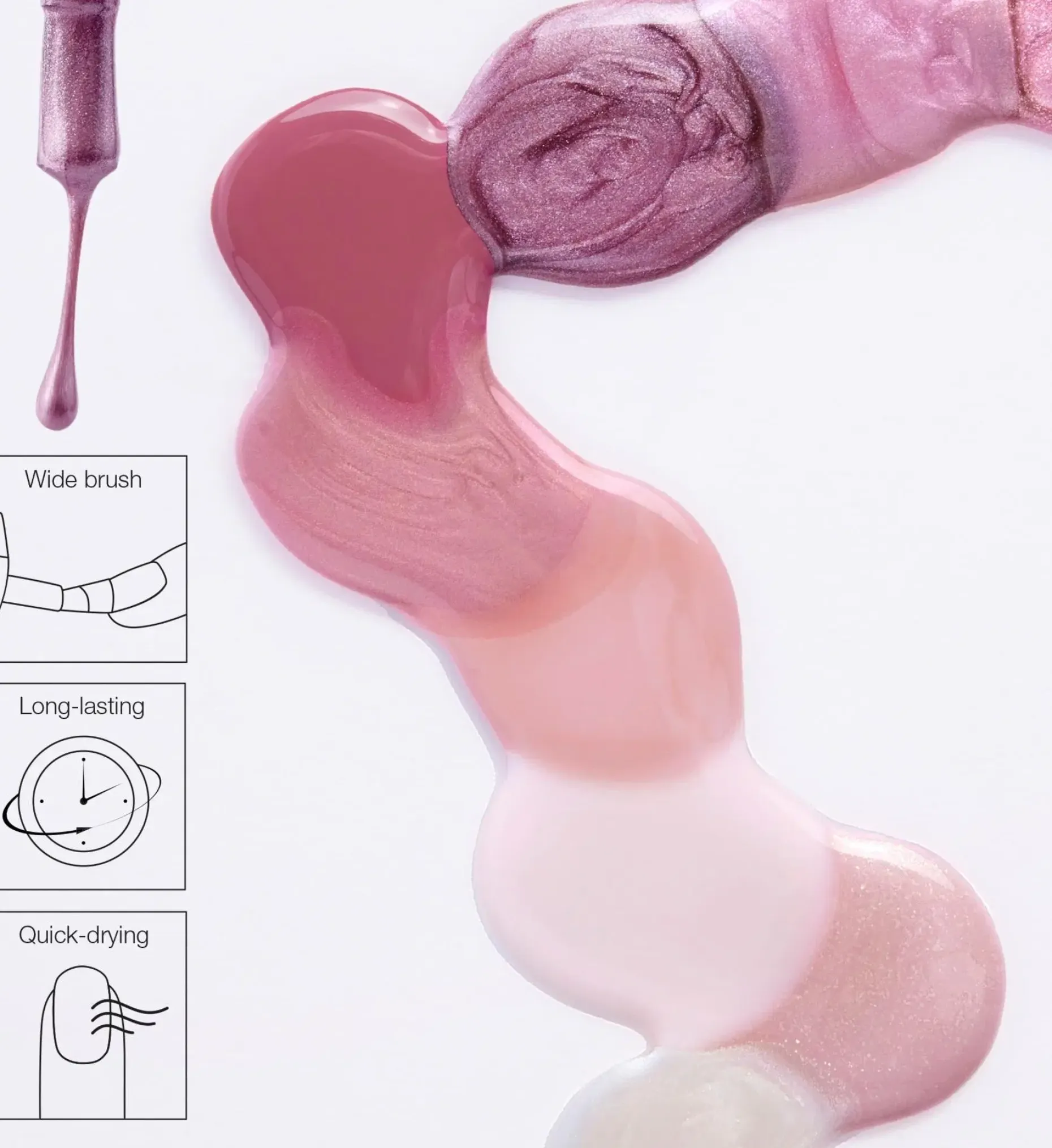 Ikoninen ja rakastettu Wonder Nail -kynsilakkamme on nyt saatavilla kattavassa värivalikoimassa. Valitse sävy, joka kuvastaa mielialaasi parhaiten ja täydentää tyyliäsi. Valikoima tarjoaa kaikkea viileistä, tyylikkäistä neutraaleista ihanan pehmeisiin pastelleihin, hohdokkaan kirkkaisiin ja intensiivisen tummiin sävyihin. Erityisen leveä sivellin tarjoaa innovatiivisellä muotoilullaan täyden, tasaisen peittävyyden ilman juovia. Koostumus on nopeasti kuivuva, halkeilematon ja suunniteltu säilyttämään värinsä koko käytön ajan. Suosittu Wonder Nail Polish yli 20 sävyn valikoimana. Tutki, löydä ja luo tyylisi!