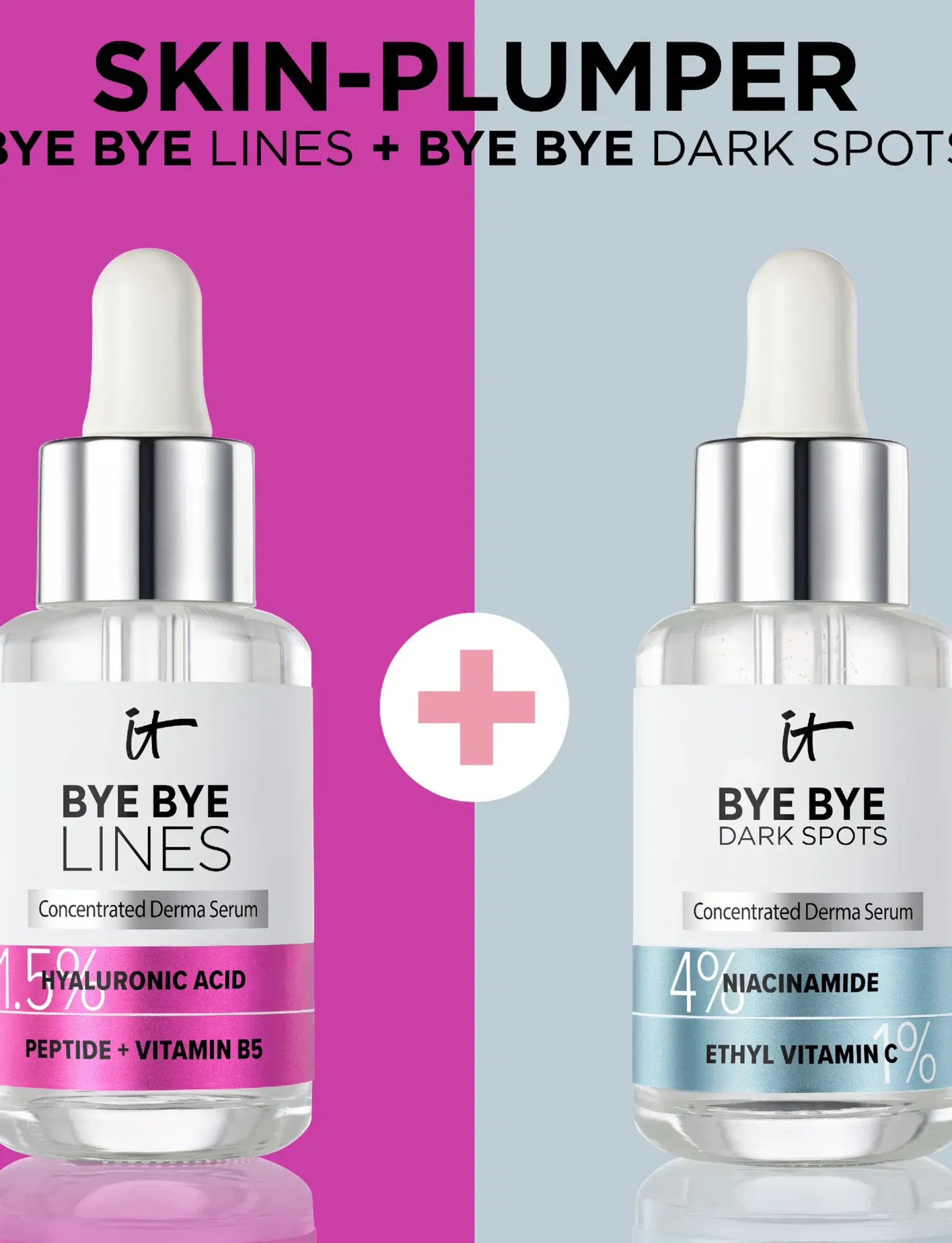 IT Cosmeticsin Bye Bye Lines Concentrated Derma Serum on kliinisesti testattu seerumi, joka auttaa tekemään ihosta näkyvästi täyteläisemmän ja silottaa juonteita. Tuotteella saa todistetusti tuloksia jo kahdessa viikossa!