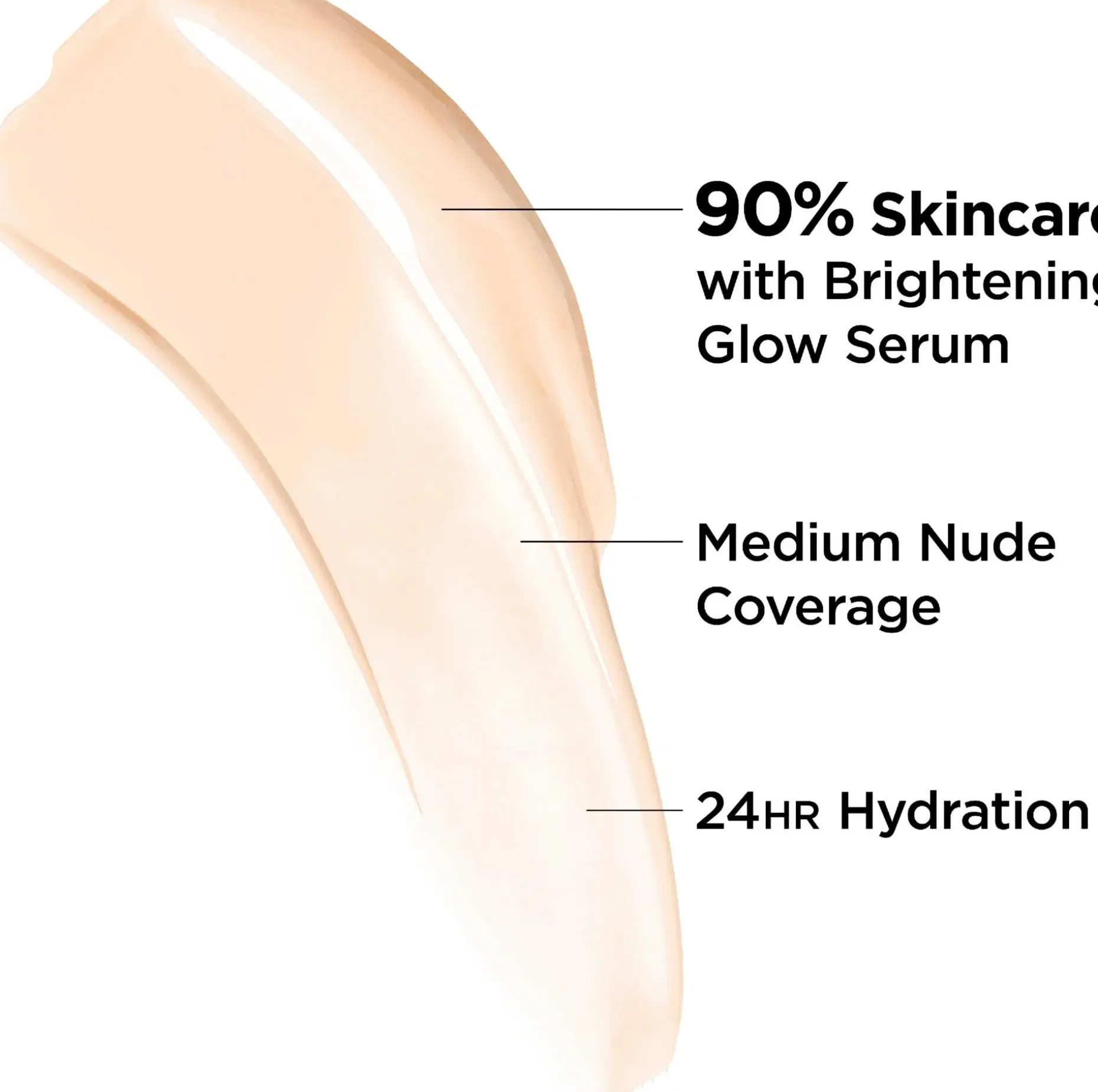 Keskipeittävä meikkivoide, joka sisältää hehkua tuovaa ja kirkastavaa seerumia. Kosteuttaa ihoa 24 tunnin ajan. CC+ Nude Glow SPF 40 on ensimmäinen 90% ihonhoitotuote, joka tekee luonnollisen sävyisestä ihostasi näkyvästi kirkkaamman!