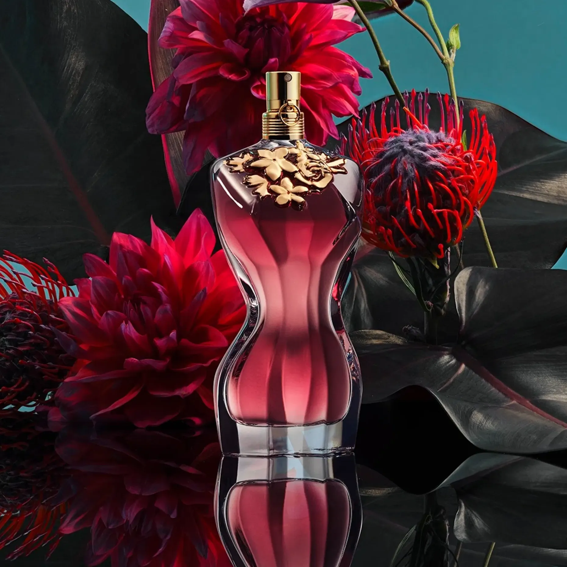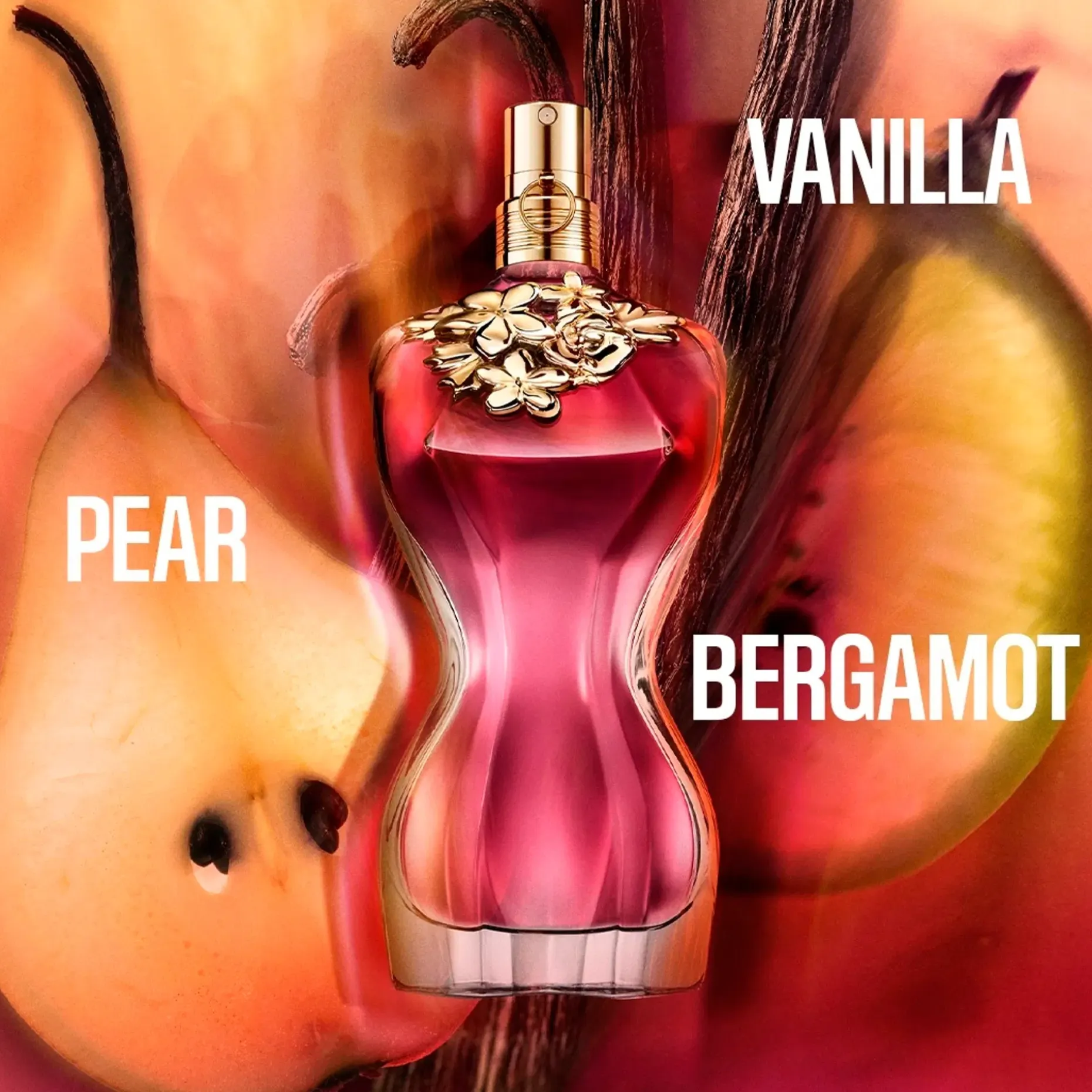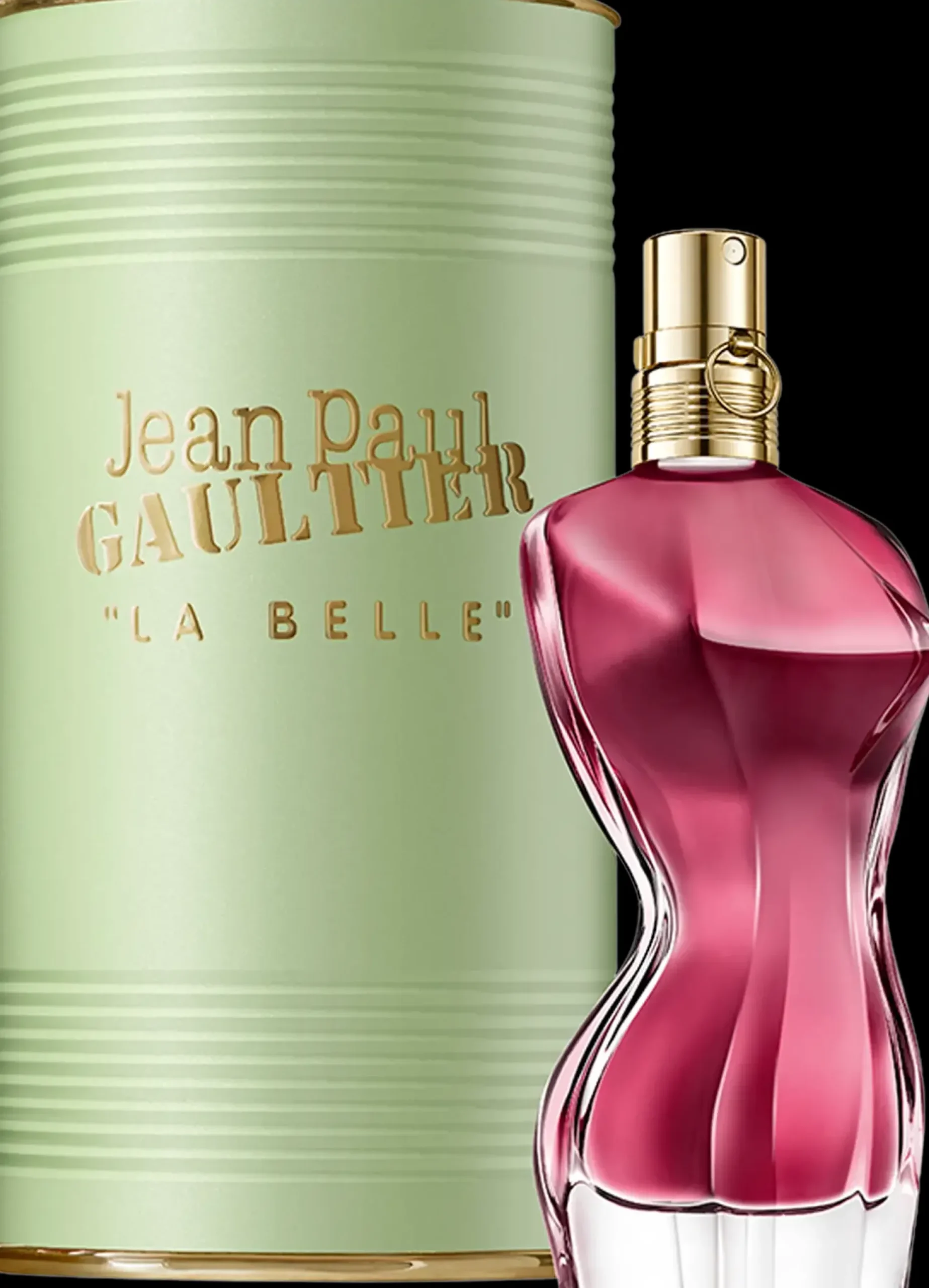 La Belle, Gaultier’n puutarhan ensimmäinen nainen. Vihreä ja kukoistava paratiisi kiusauksille, jossa hänen ensimmäinen naisensa, La Belle, elää rauhassa. Tämän vihreän paratiisin sydämessä magentanpunainen pullo elää vapaasti ja sensuellisti, koristeltuna yksinkertaisella kultaisista kukista tehdyllä kaulaketjulla, häikäisevällä avantgarde-korulla. Kukaan ei voi vastustaa häntä, ei edes Le Beau. Pirskahtelevan päärynän, pirteän bergamotin ja kuuman vaniljan sekoitus lumoaa aistit syntisyyteen asti tuoksullaan. Aito paratiisin tuoksu.