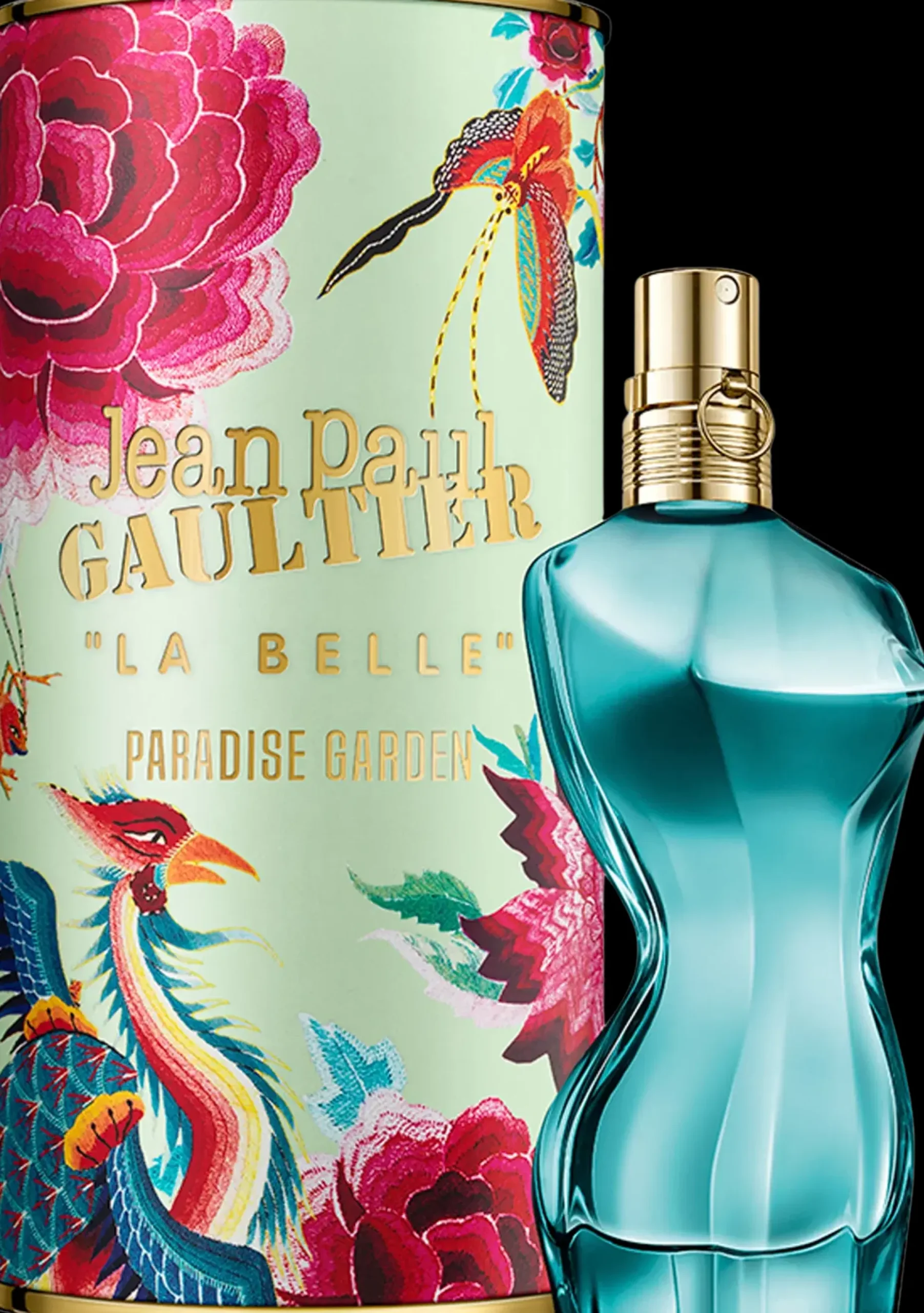 Gaultierin näyttävä puutarha, jossa on eksoottisia olentoja ja kukkia, sai inspiraationsa hänen 2010-11 syksy-talvinäytöksestään ja upean kiehtovasta Edenistä, joka on täynnä kiellettyjä nautintoja. Tässä yltäkylläisessä paratiisissa La Belle Paradise Garden ja Le Beau Paradise Garden jakavat kaiken intohimonsa. Häikäisevän kaunis sininen tuoksupullo viehättää aisteja vastustamattomalla sensuaalisuudella. Anna tämän kiihottavan kukkaisen ja vaniljaisen nektarin lumota itsesi!
