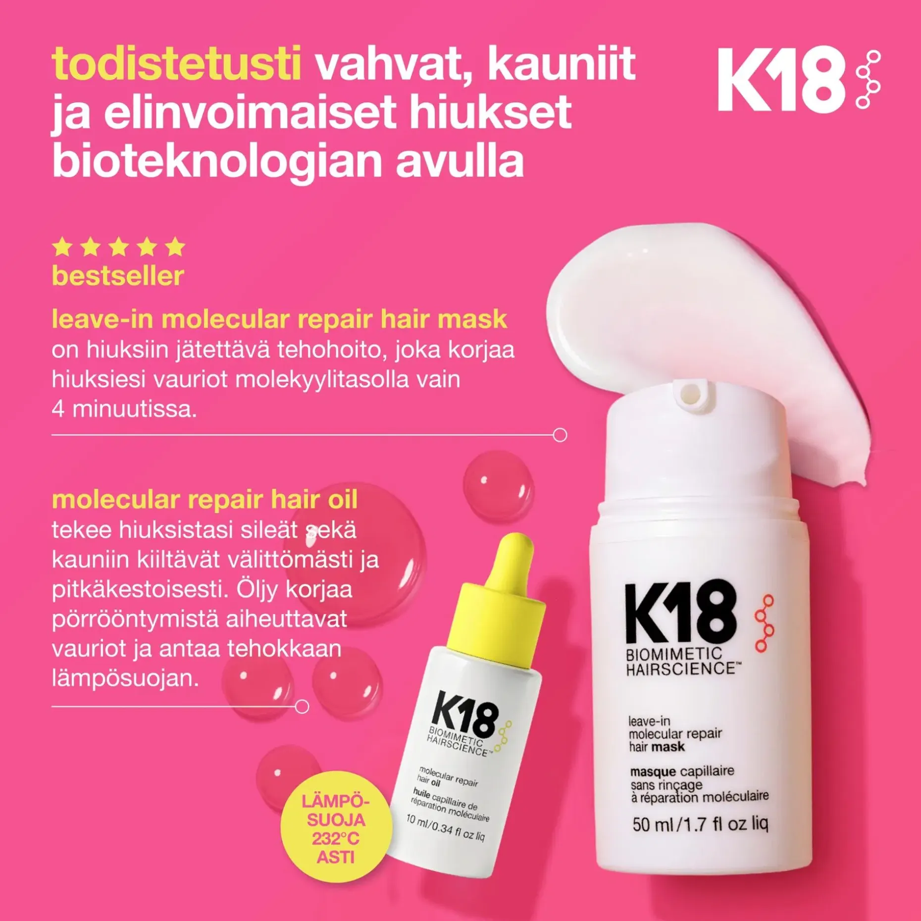 Tekee hiuksista välittömästi ja pitkäkestoisesti sileät, pehmeät ja kauniin kiiltävät.