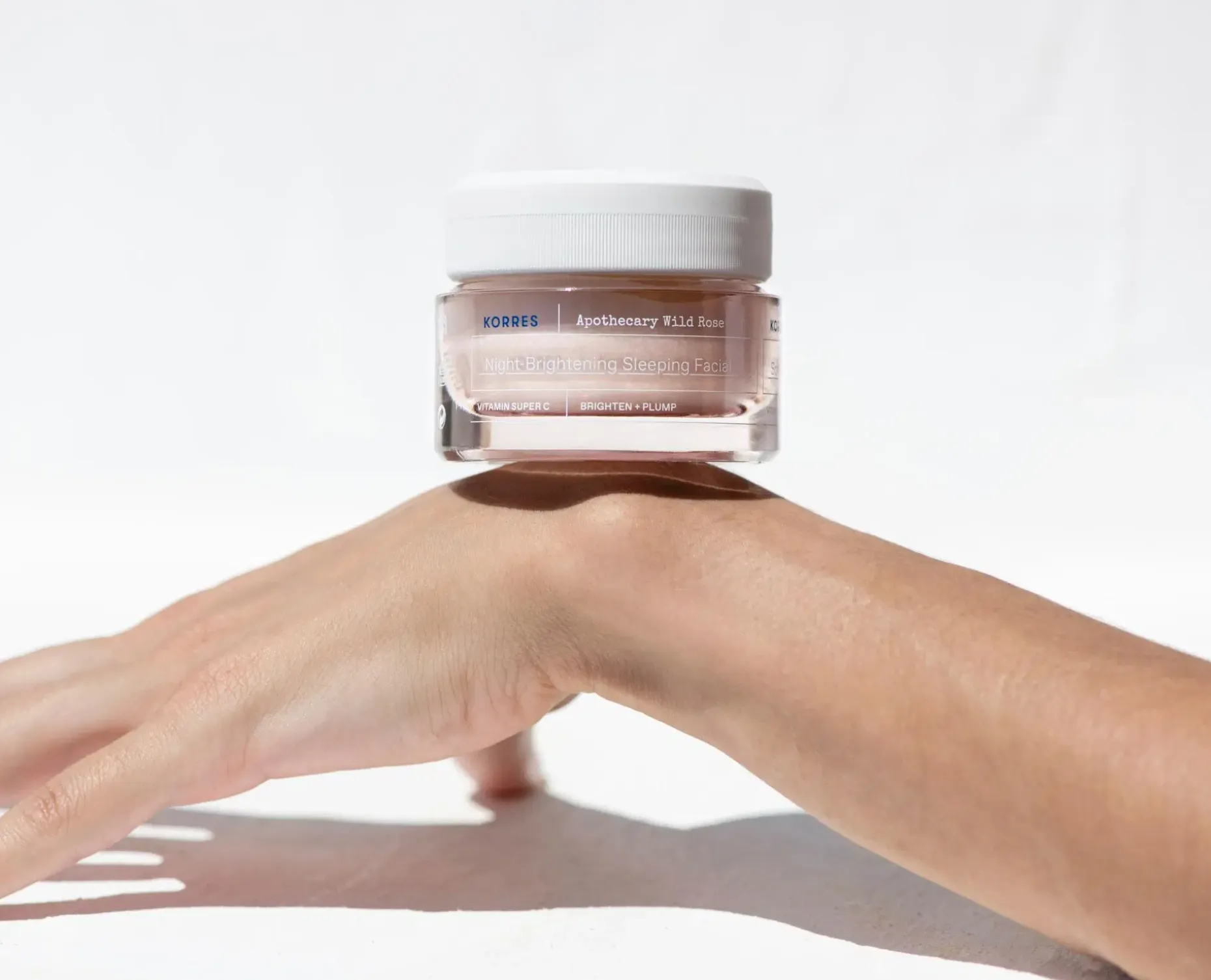 KORRES Apothecary Wild Rose kirkastava ”yön-yli” hoitonaamio on samettinen yövoide, joka kuin sulaa iholle, kosteuttaa tehokkaasti, kirkastaa ihoa ja ennaltaehkäisee ikääntymisen merkkien syntymistä. Villiruusuöljy, pitkään KORRESin tuotteissa käytetty arvokas raaka-aine, yhdistettynä Super C-vitamiiniin, kurkumauutteeseen ja luonnon öljyihin tekevät ihosta yön aikana pehmeän, tasaisen ja heleän!